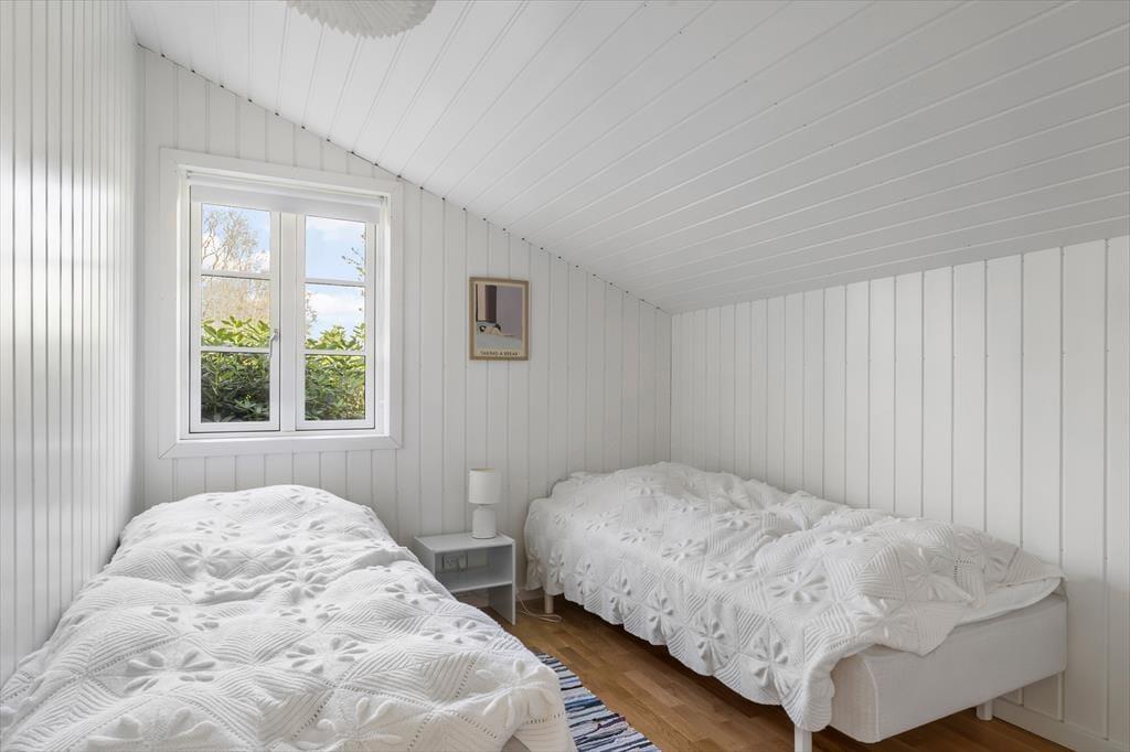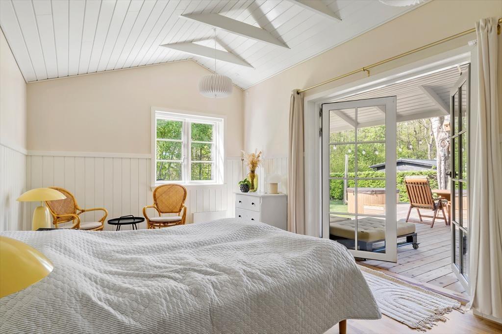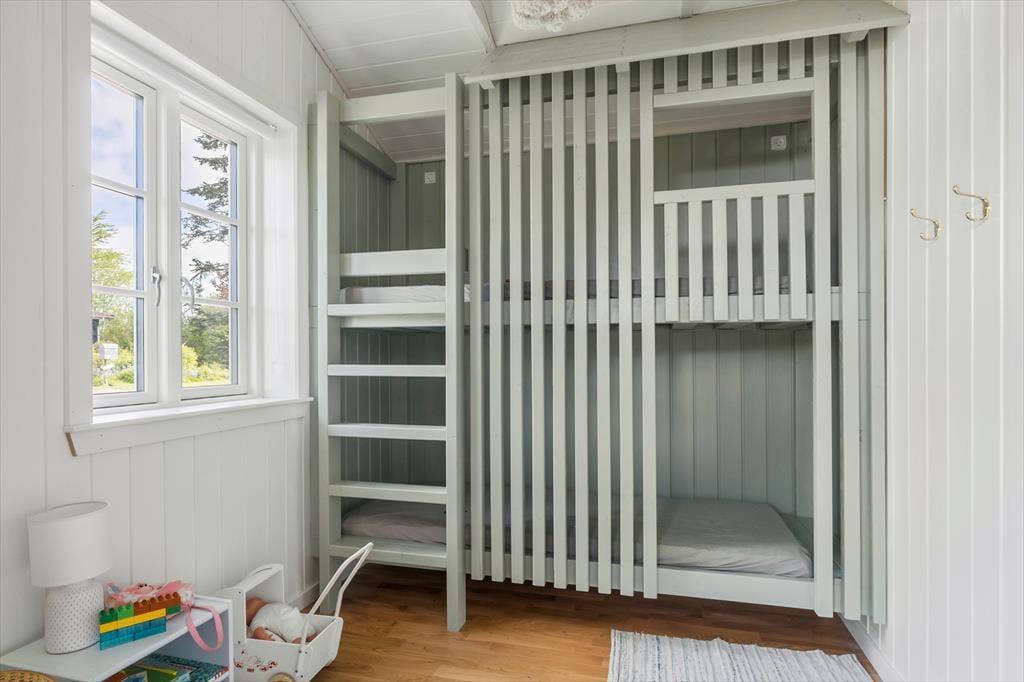 De lyse soveværelser byder på gode komfortable senge. Master bedroom har sin egen udgang til terrassen, som kaster et luksuriøst skær over ferien. Børneværelset er et fantastisk univers, hvor sengetid bliver som en eventyrlig leg. Badeværelset er moderne og lyst, med både maskuline og feminine elementer. I dette sommerhus vil føle du helt hjemme fra første øjeblik.
