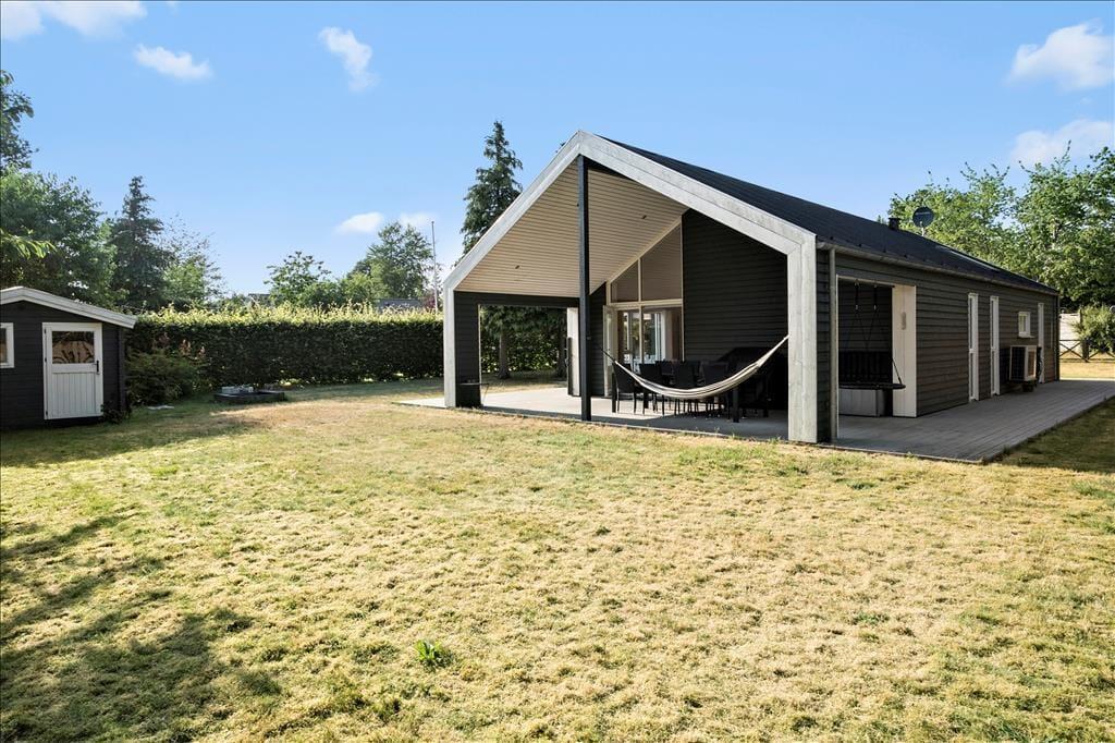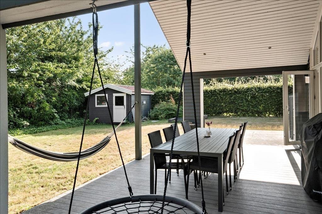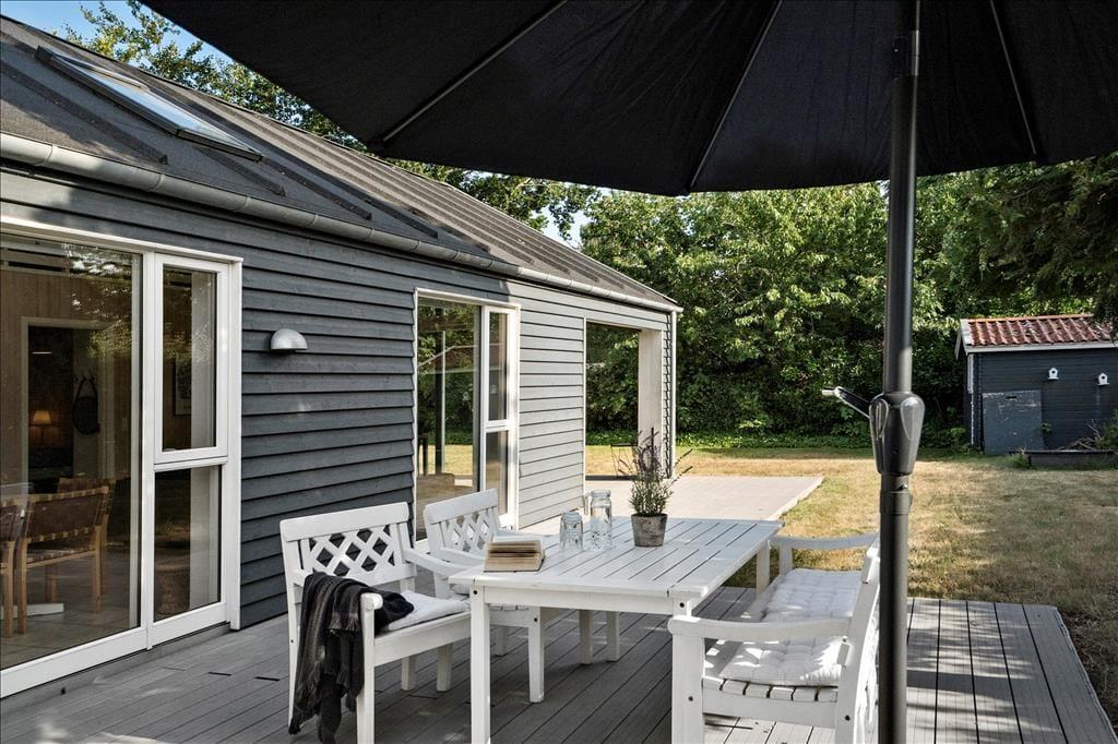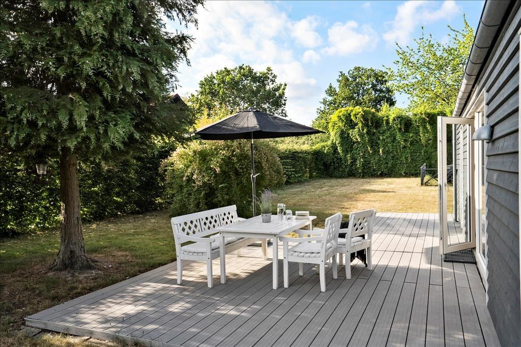 Træd ud på terrassen og mærk roen. Her, omgivet af en smuk opvokset have, kan du finde læ og nyde et uforstyrret ophold, langt væk fra hverdagens larm og trængsel. Der er noget helt særligt ved at sidde under åben himmel og mærke tiden gå langsommere – måske med en kop kaffe eller et godt glas vin i hånden. På den store, grønne plæne kan der leges, slappes af, og hvis stemningen er til det, kan maden tilberedes på gasgrillen og nydes udendørs i lyset fra solnedgangen. Og hvorfor ikke runde dagen af ved bålstedet med snobrød og fortællinger, mens stjernerne tænder på nattehimlen?