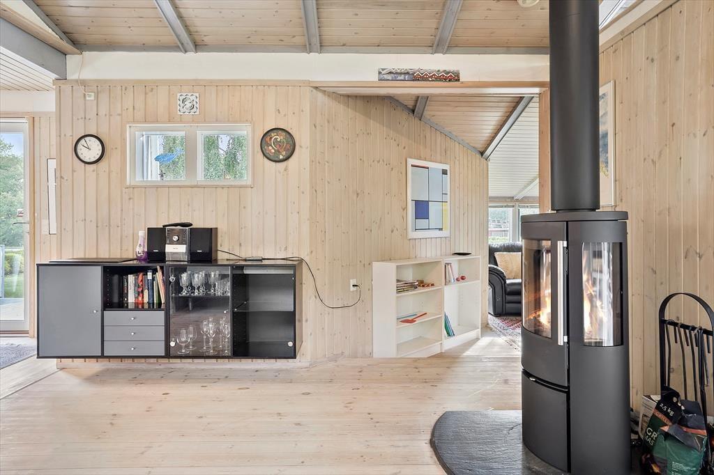 Dejligt sommerhus fra 1990. Sommerhuset er godt indrettet med bl.a. et opholdsrum med brændeovn. Køkkenet er i åben forbindelse med stuen og danner tilsammen et stort opholdsrum med mange siddepladser. Badeværelset er med brus og her finder man også vaskemaskine. Foruden annekset er der tre gode soverum med god plads.