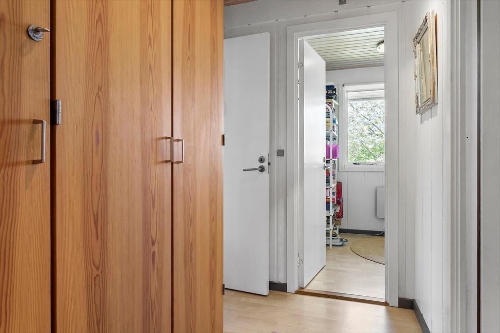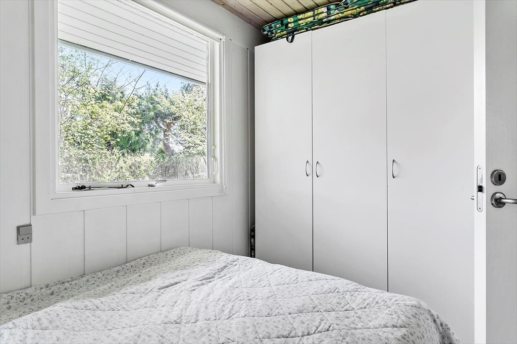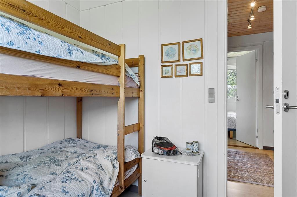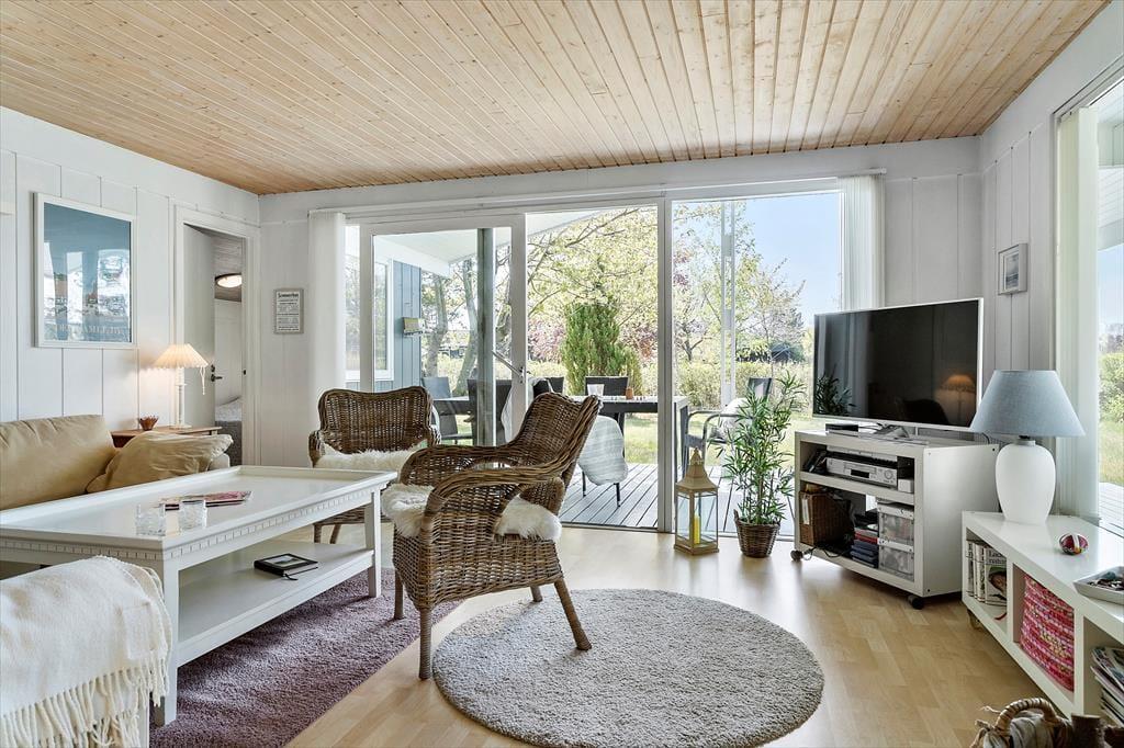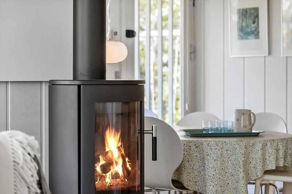 Sommerhuset er indrettet lyst og med romantisk stil. Her er et pænt nyere køkken. Med hvide elementer og mørk bordplade. Her er god plads. Køkkenet er med opvaskemaskine og er i åben forbindelse med stuen. I stuen er der brændeovn. Badeværelset er med vaskemaskine. Sommerhuset er bygget i 1975, men er delvis renoveret i 2010. Sommerhuset er småbørnsvenligt og egner sig godt til familier med børn. Her er tre gode soveværelser. Der er varmepumpe med køl i sommerhuset.