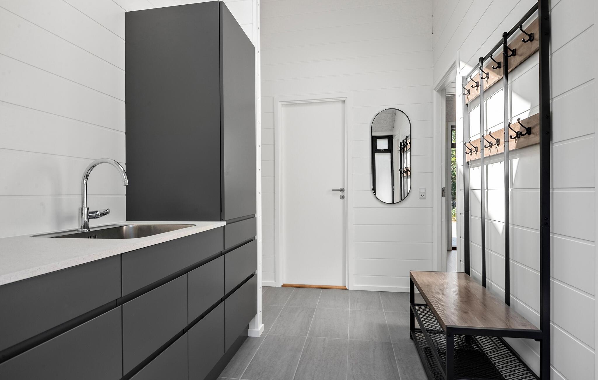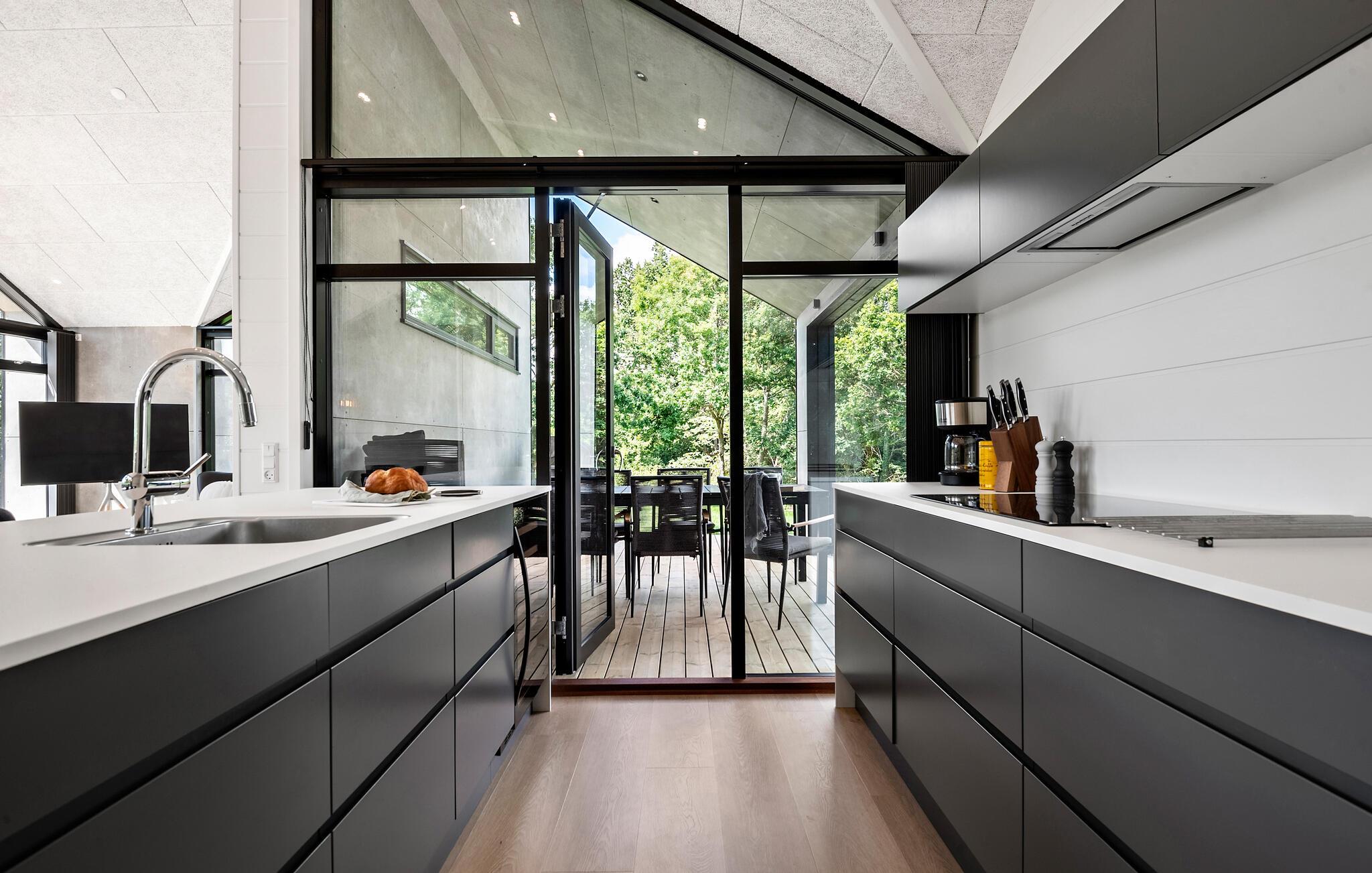 Dette luksuriøse hjem er noget særligt med moderne arkitektur, der kombinerer rene linjer med fine detaljer. De store vinduer lukker masser af naturligt lys ind og skaber en behagelig atmosfære i de smagfulde rum. I det veludstyrede designerkøkken kan I ubesværet trylle lækre måltider frem, som I kan nyde med udsigt over den grønne have. Her kan I slappe af mellem dagens udflugter, nyde livet og fylde timerne med brætspil, gode bøger og den dejlige varme i saunaen.