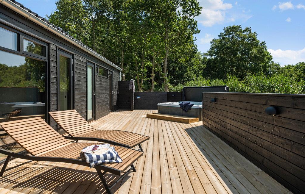 Elegant feriehus i Odder med spabad, sauna og moderne design for afslapning og oplevelser.