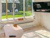 I dette hus skaber masser af naturligt lys, ren arkitektur og et komfortabelt sofaområde en atmosfære, der både er hyggelig og afslappet. Slap af og lad batterierne op, mens I nyder den smukke udsigt over det omkringliggende landskab. Uanset om I tilbereder måltider sammen i det moderne køkken, lytter til musik eller snakker – er det nemt at koble fra her.