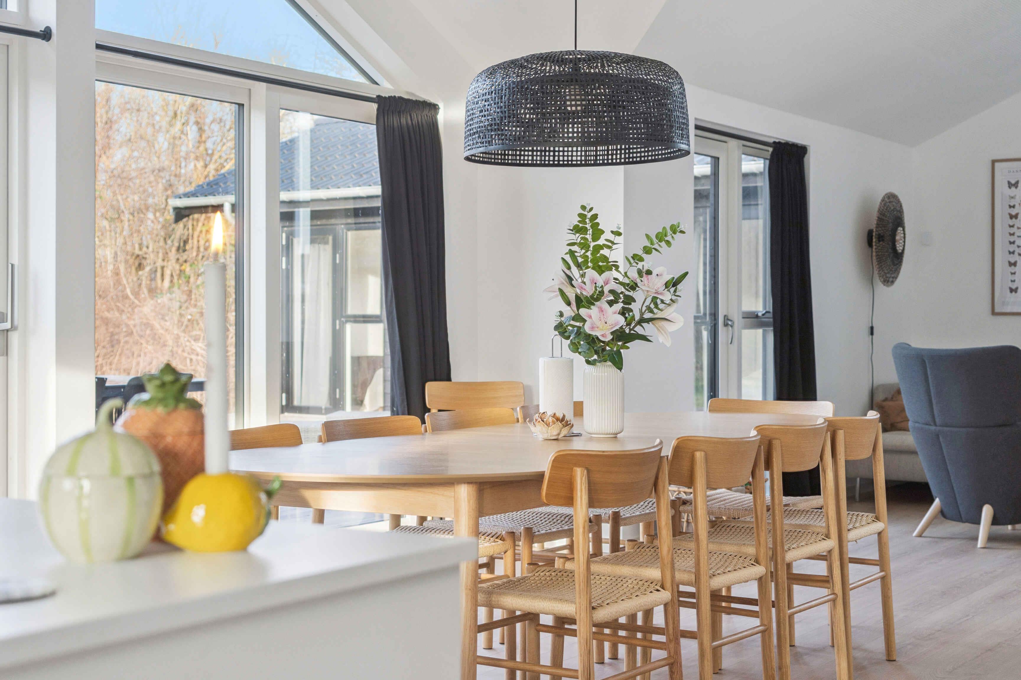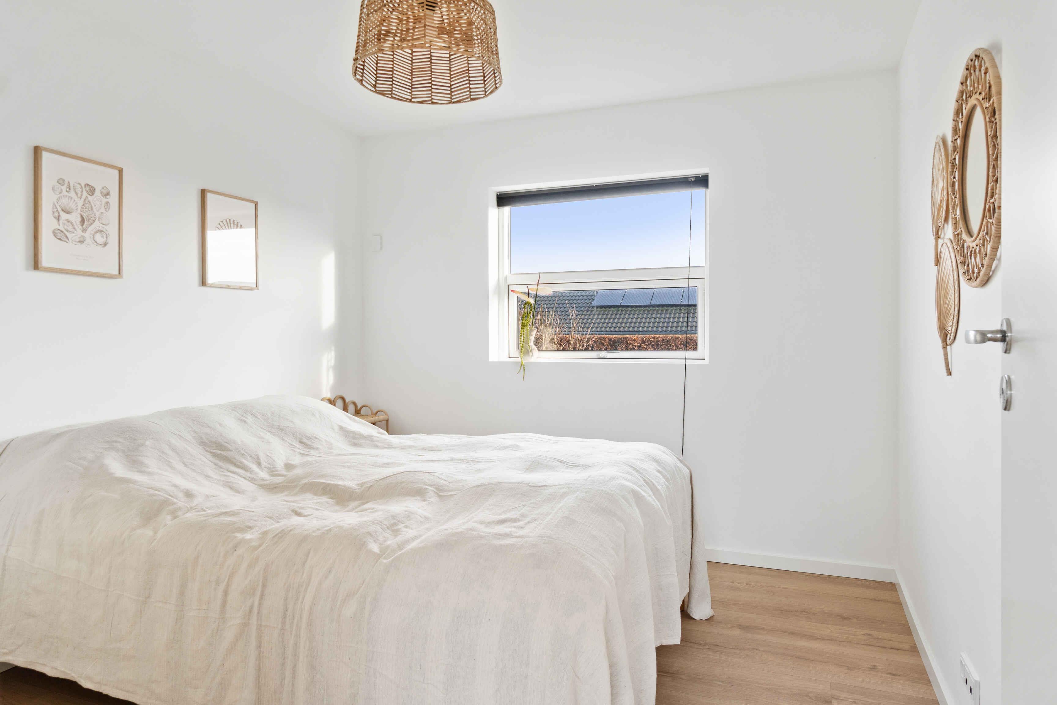 Moderne sommerhus med gulvvarme og 10+ sovepladser fordelt på 3 værelser i 114m2 hus med stor hems og 2 værelser i 28m2 anneks med eget bad og toilet. Huset ligger på rolig grund med gode indkøbsmuligheder og kort afstand til strand.