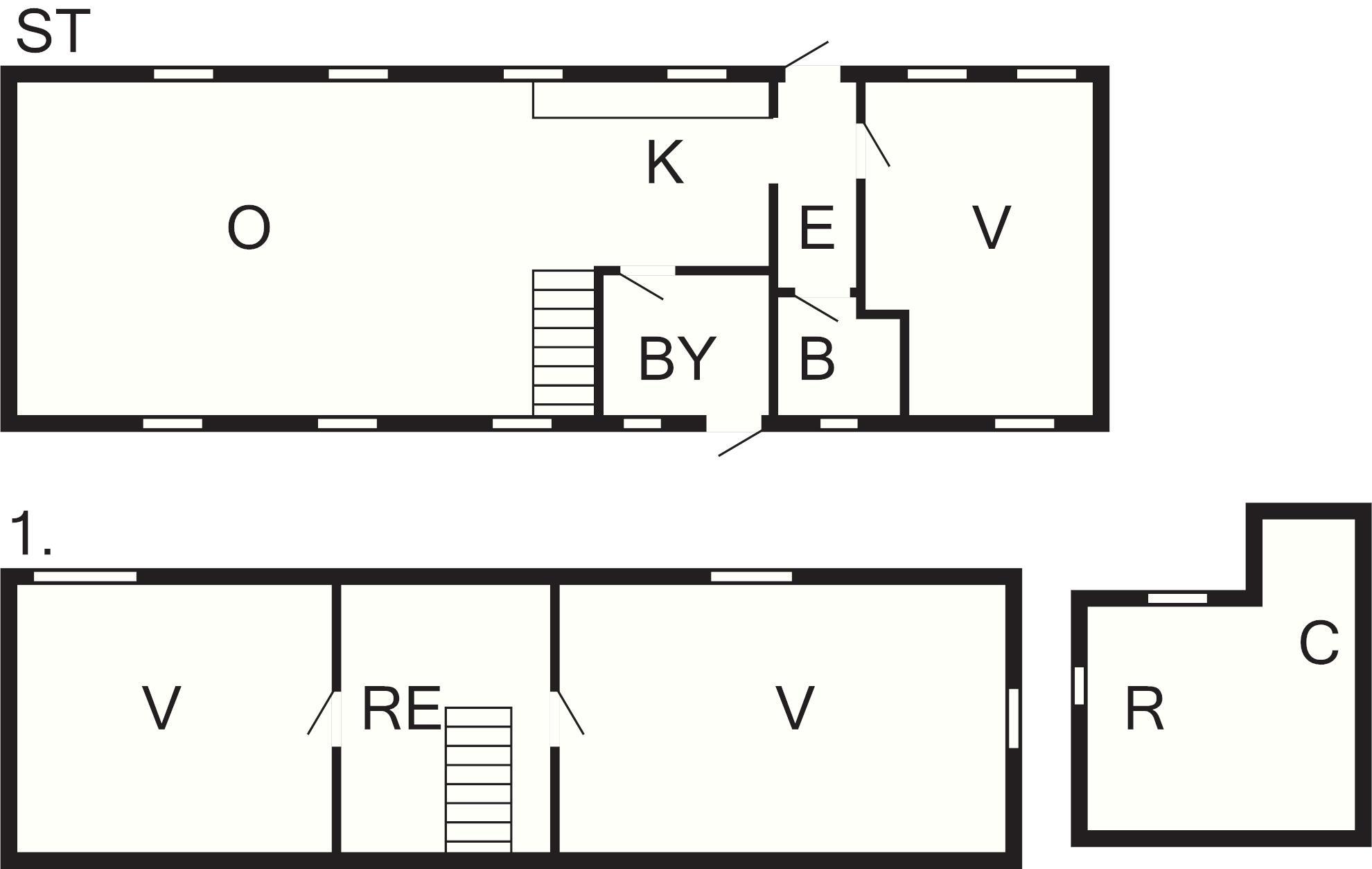 Huset indeholder stor stue med udgang til haven, TV med 80 kanaler, og et velholdt nyere køkken. Herudover badeværelse samt 3 værelser heraf 1 i stueetagen. Der forefindes ovn, induktionskogeplade, opvaskemaskine og vaskemaskine.