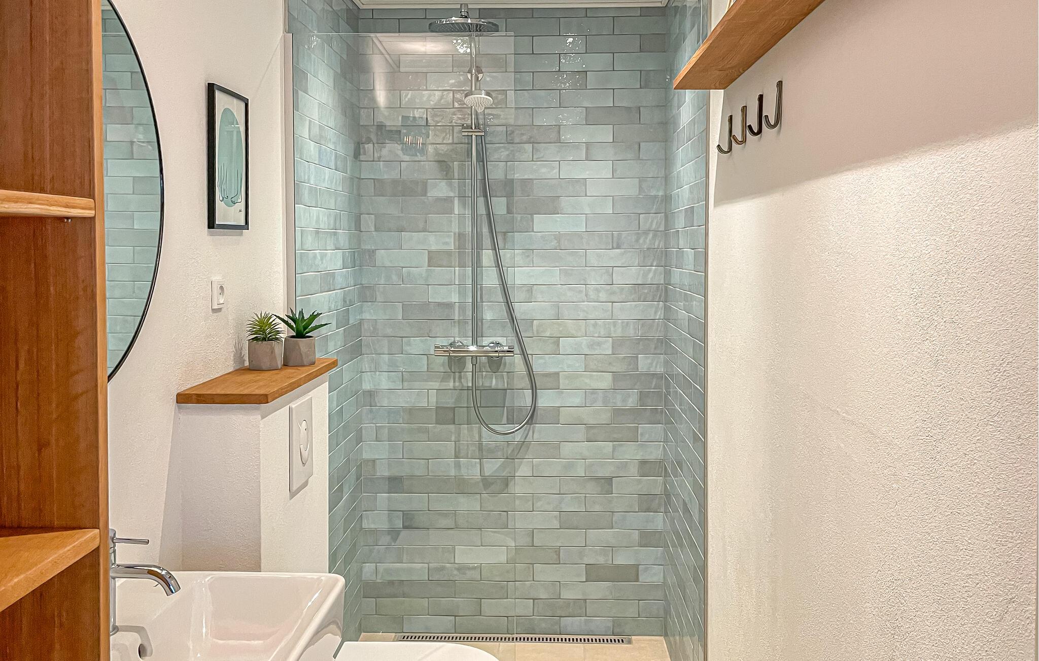 Badeværelse (nr. 1) - WC. Varmt og koldt vand. Bruser