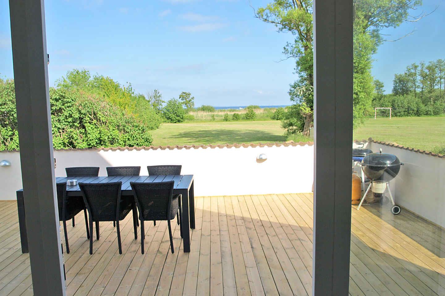 Skønt feriehus til 12 personer med havudsigt, stor terrasse og kun 75 meter fra kysten i Spodsbjerg, Langeland.