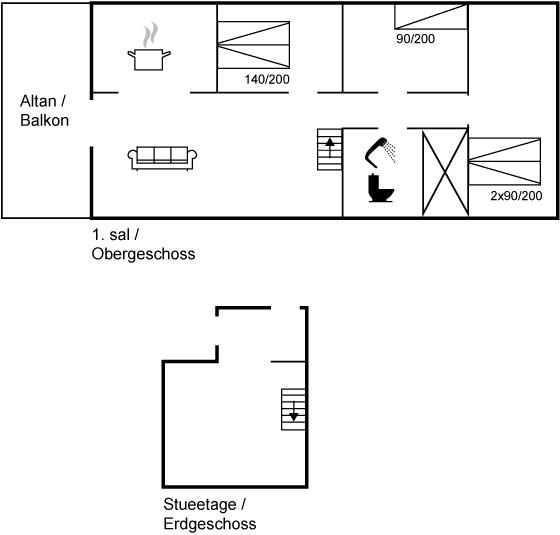 Ferielejligheden egner sig til 5 personer. Ferieboligen er på 90 m², er i 2 plan, og er bygget i 1970. I 2000 gennemgik ferieboligen en delvis renovering. Det er tilladt at medbringe 1 husdyr. Der er fjernvarme. Frysekapacitet på 50 liter.