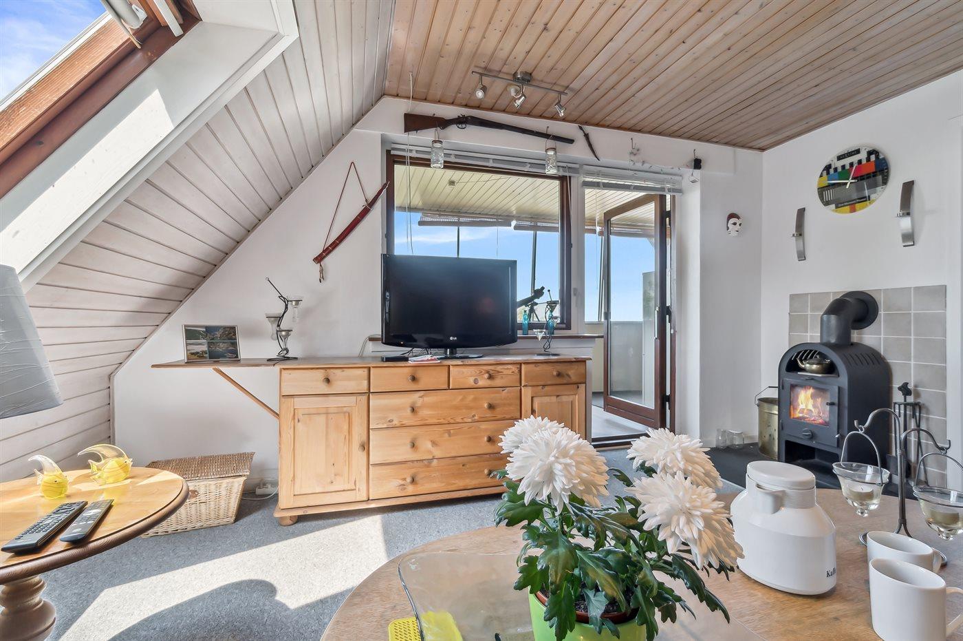 Den delvist lukkede udsigtsaltan giver gode muligheder for at hygge sig og er oplagt, når frokosten skal nydes. I opholdsstuen kan man følge med på TV, når man skal orientere sig om, hvad der sker rundt om i verden. Trappeopgangen ligger i den lille spisestue i stueplan. Til lejligheden hører også et pænt badeværelse og et større soveværelse med udsigtsvinduer.