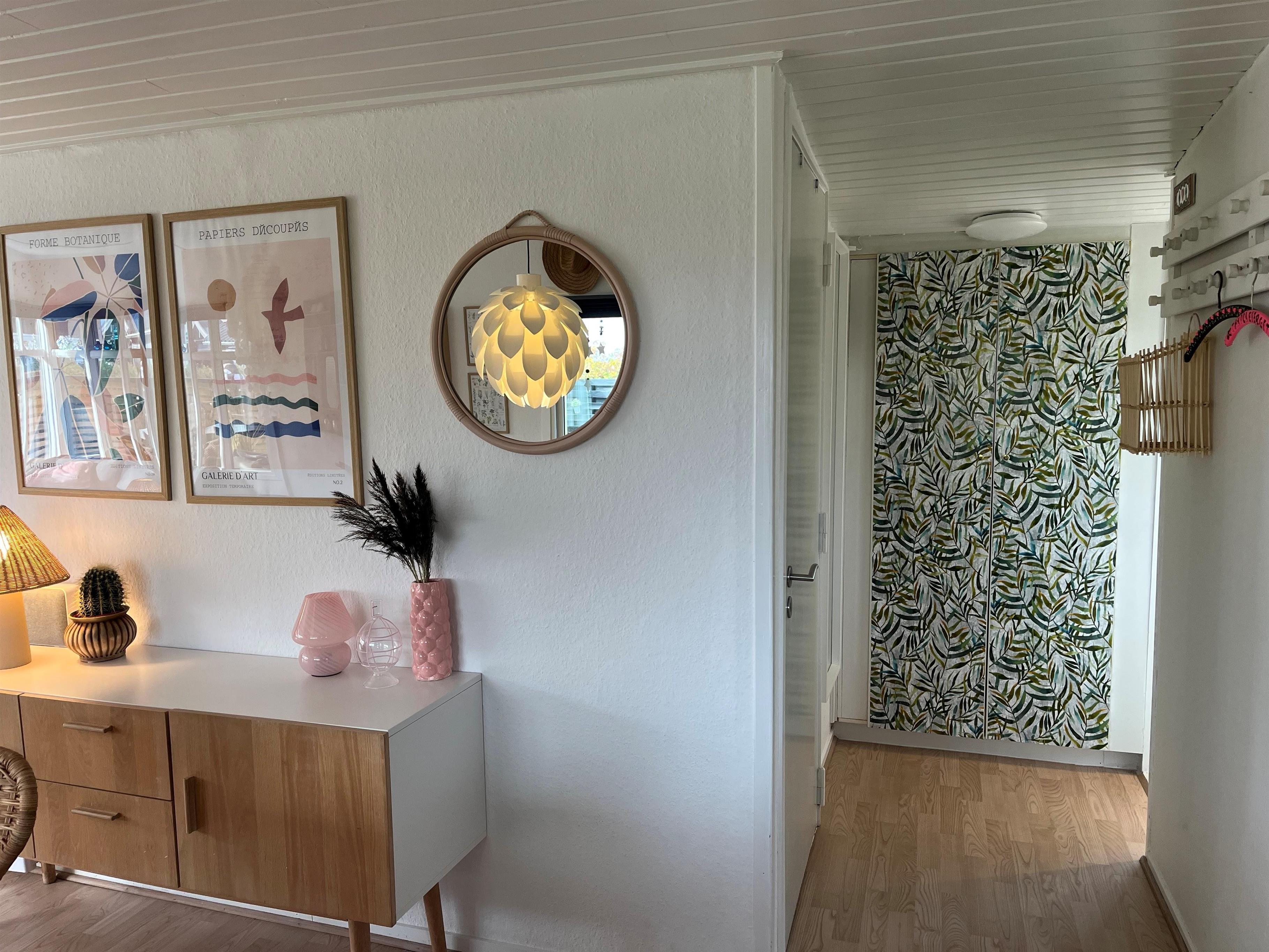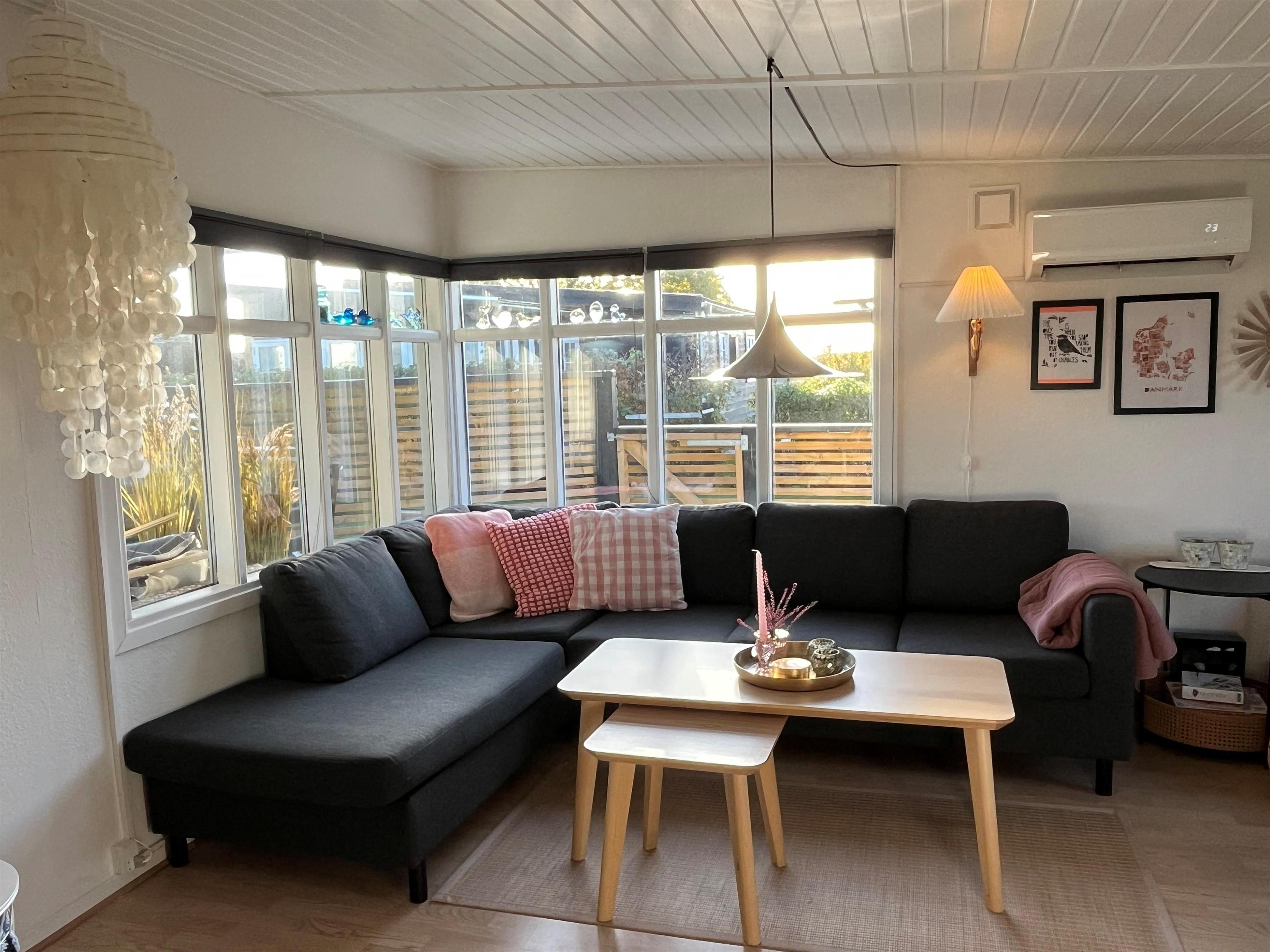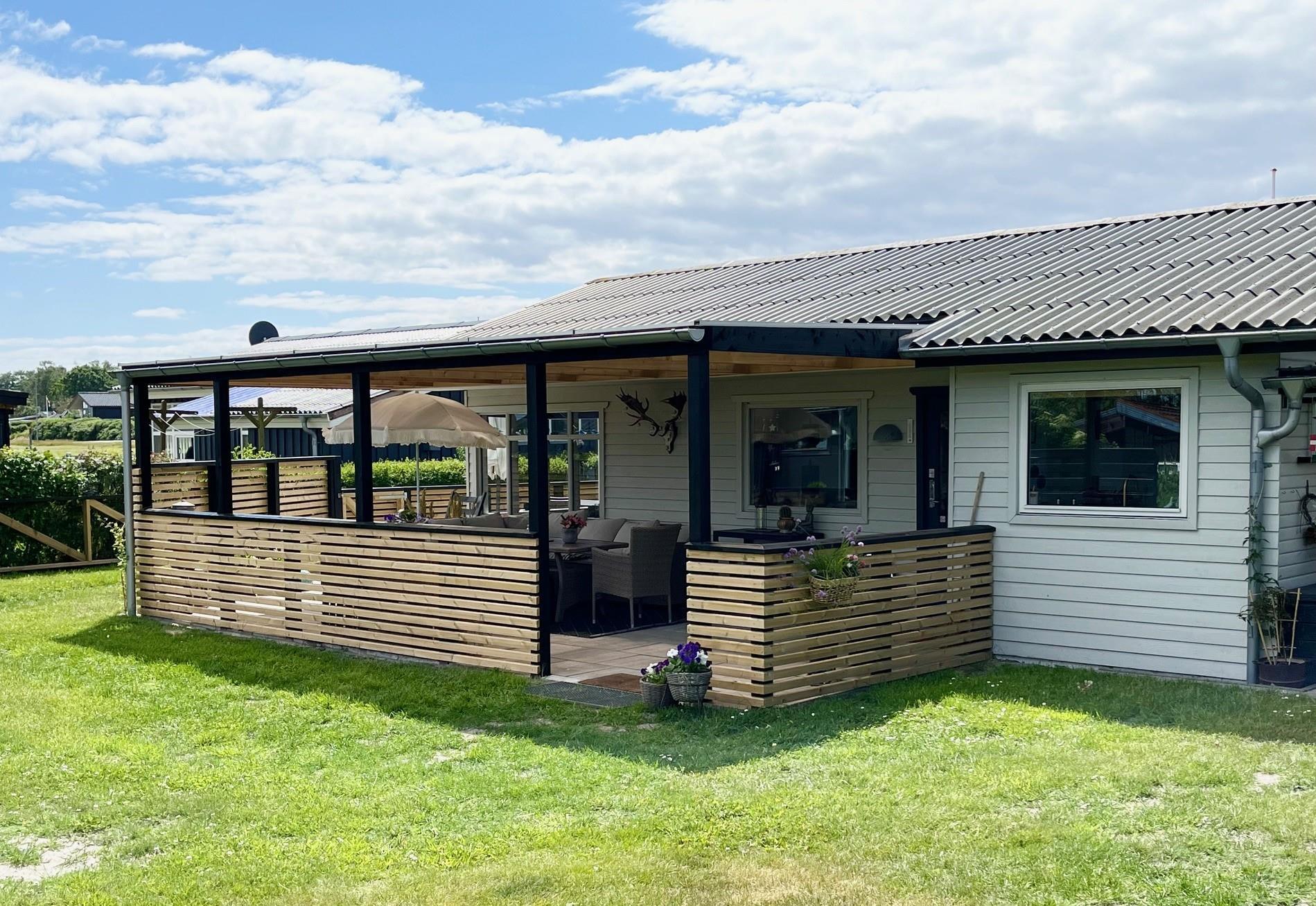 Et velfungerende hus på 53 m2, hvor pladsen er udnyttet optimalt. Der er også en 25 m2 stor overdækket terrasse foran huset hvor dagene og aftnerne kan nydes med hygge og med ild i den lille pejs/ grillen.