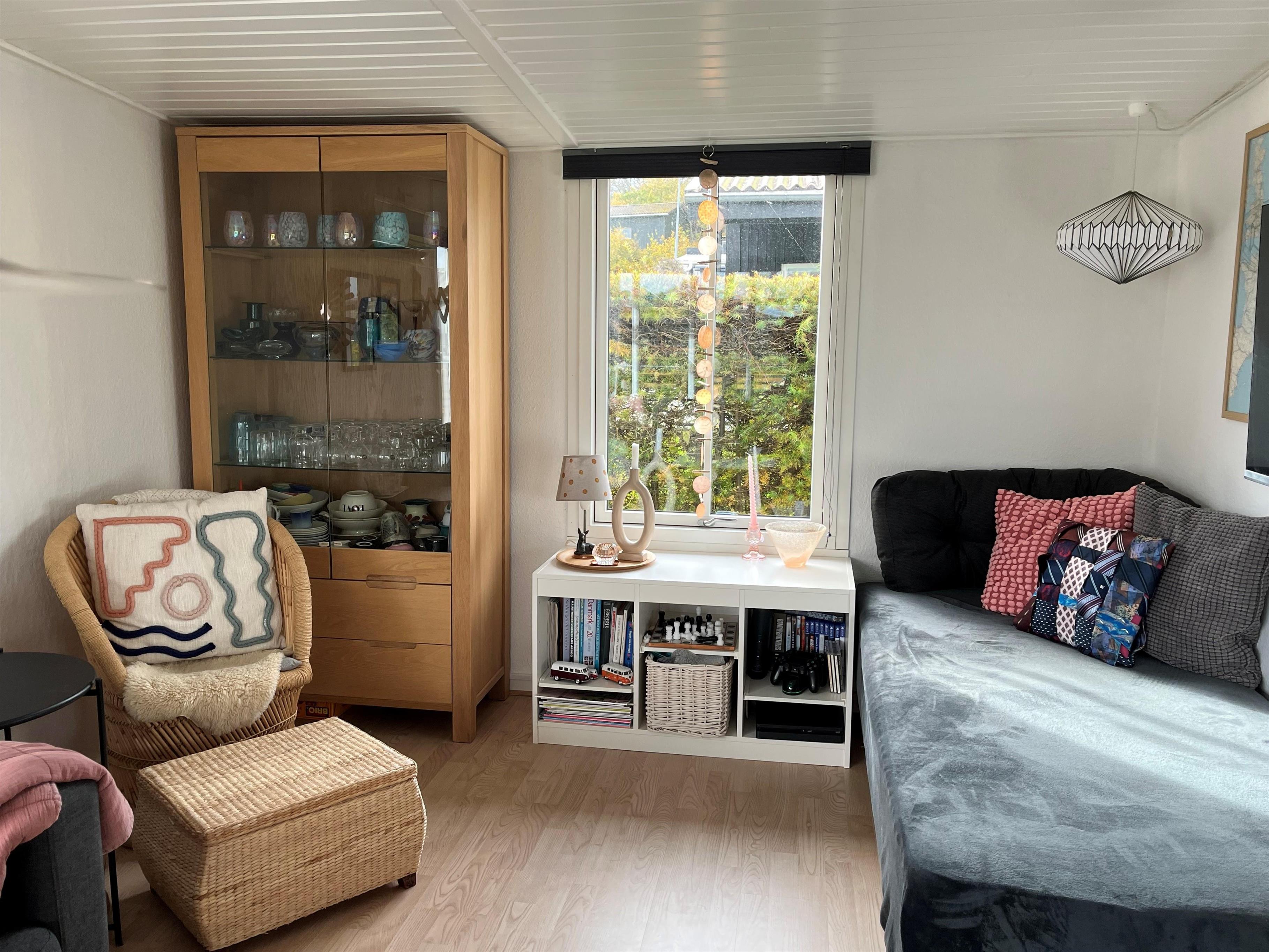 I stuen er der en ekstra soveplads - i form af en boxmadras - hvis der er behov for en ekstra opredning.