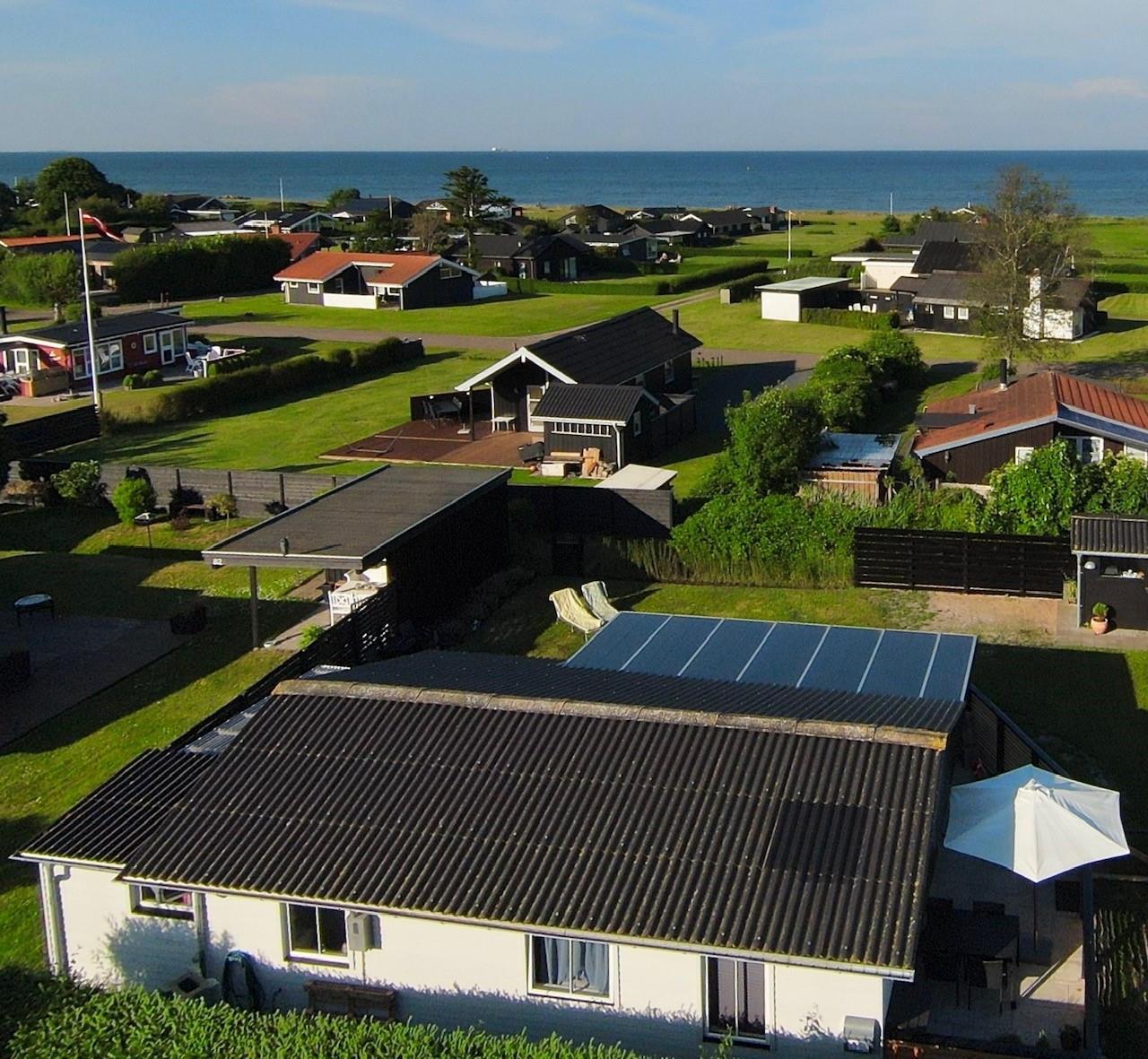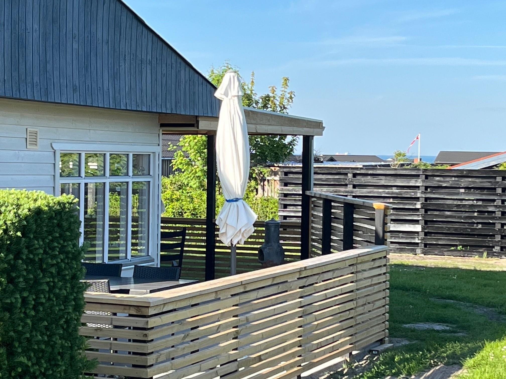 Der er skøn mindre have og en dejlig afskærmet vestterrasse, som bidrager til at man føler sig ugeneret. Grunden er indhegnet, hvilket gør ferieboligen velegnet til de familier som ønsker at medbringe deres firbenede familiemedlem på turen.