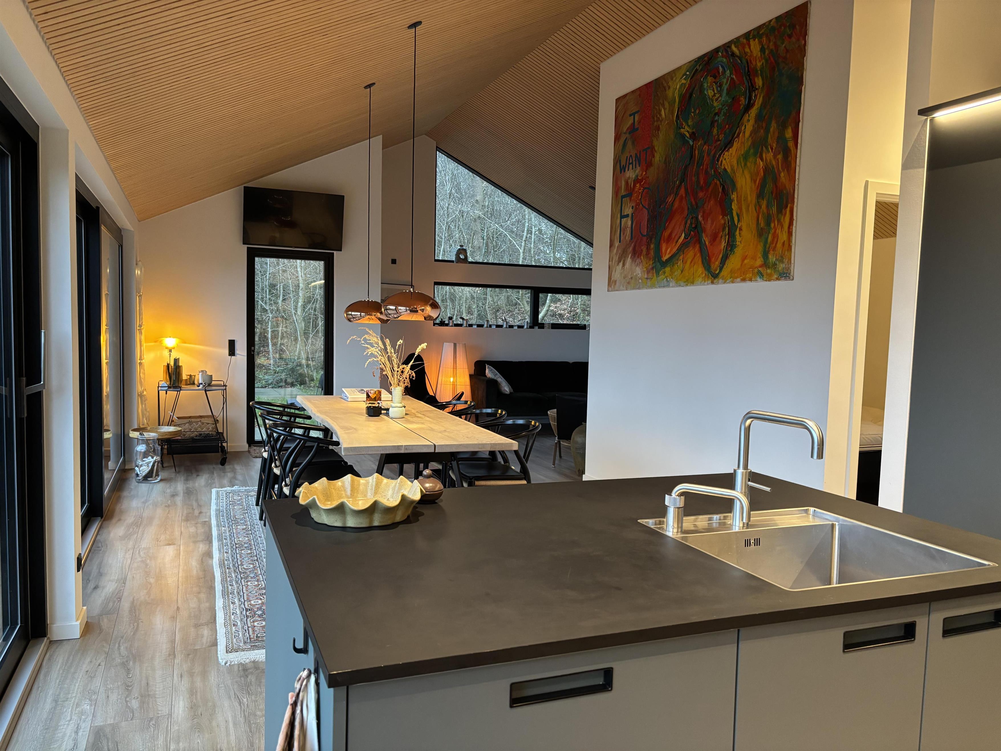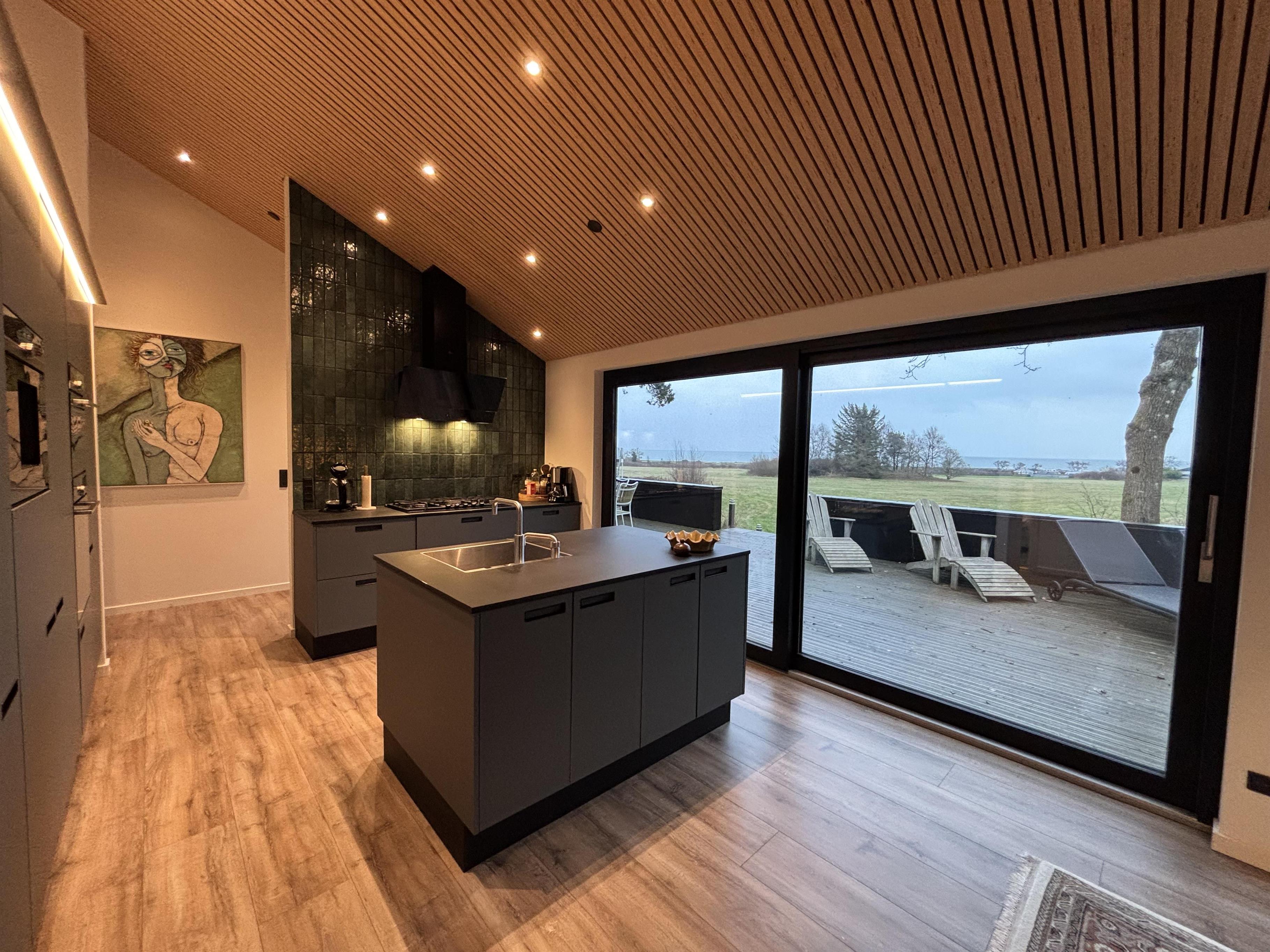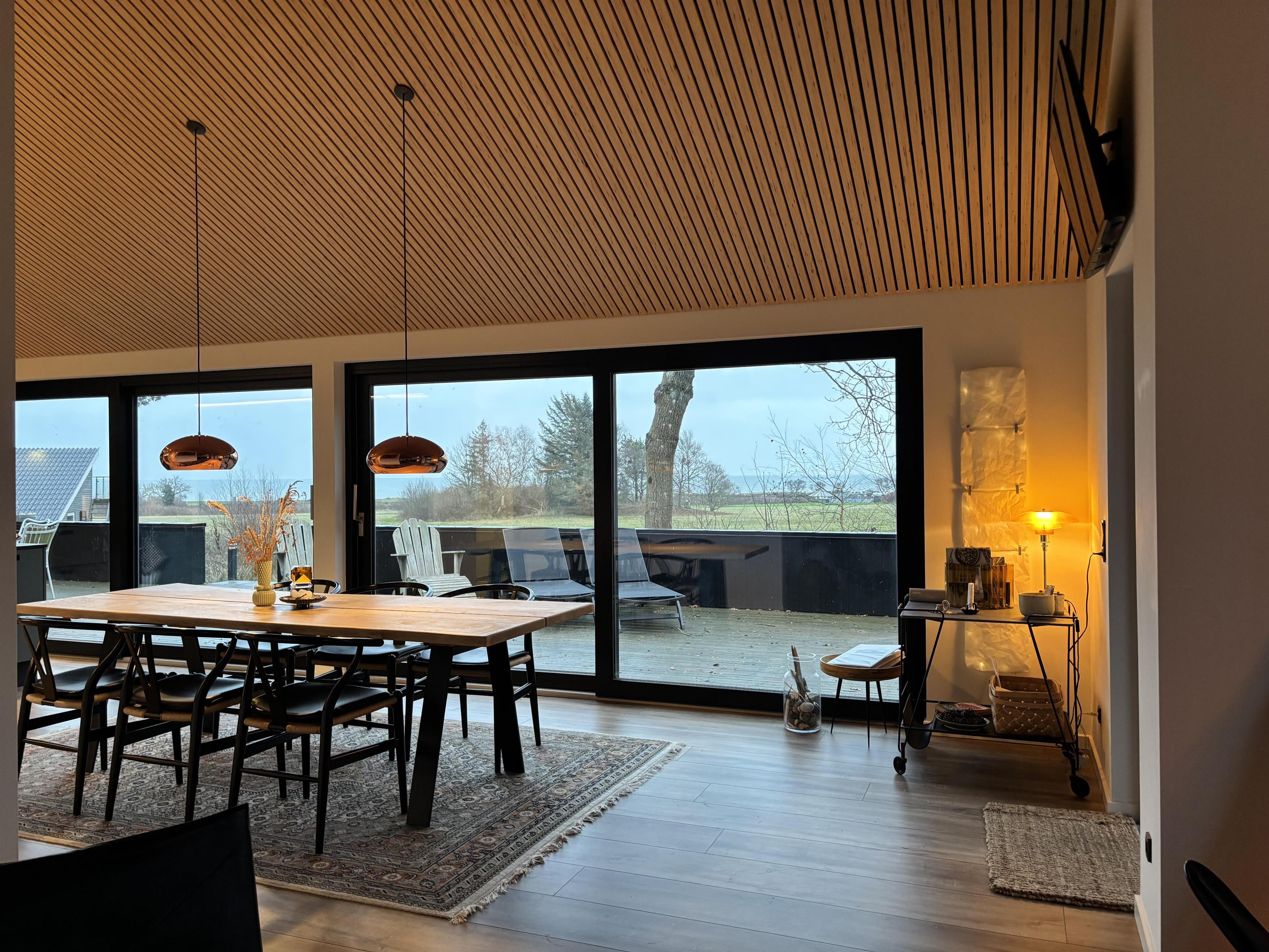 Indenfor mødes I af et lyst og stilfuldt miljø med kvalitetsmaterialer og sans for detaljer. Huset byder på tre indbydende soveværelser, to elegante badeværelser og et veludstyret køkken, hvor den store vinduessektion giver jer havudsigt – selv madlavningen bliver en fornøjelse her. Den åbne spise- og opholdsstue har direkte udgang til terrassen.