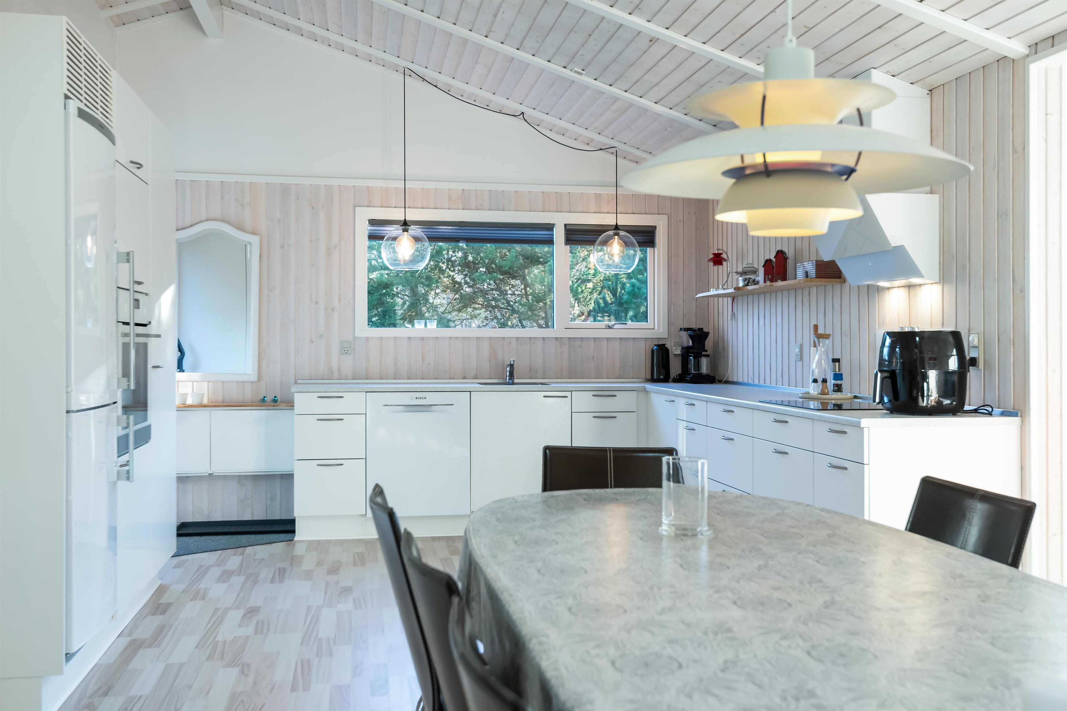 Sommerhuset har et nyt køkken/alrum fra 2020 med fantastisk god plads omkring spisebordet.