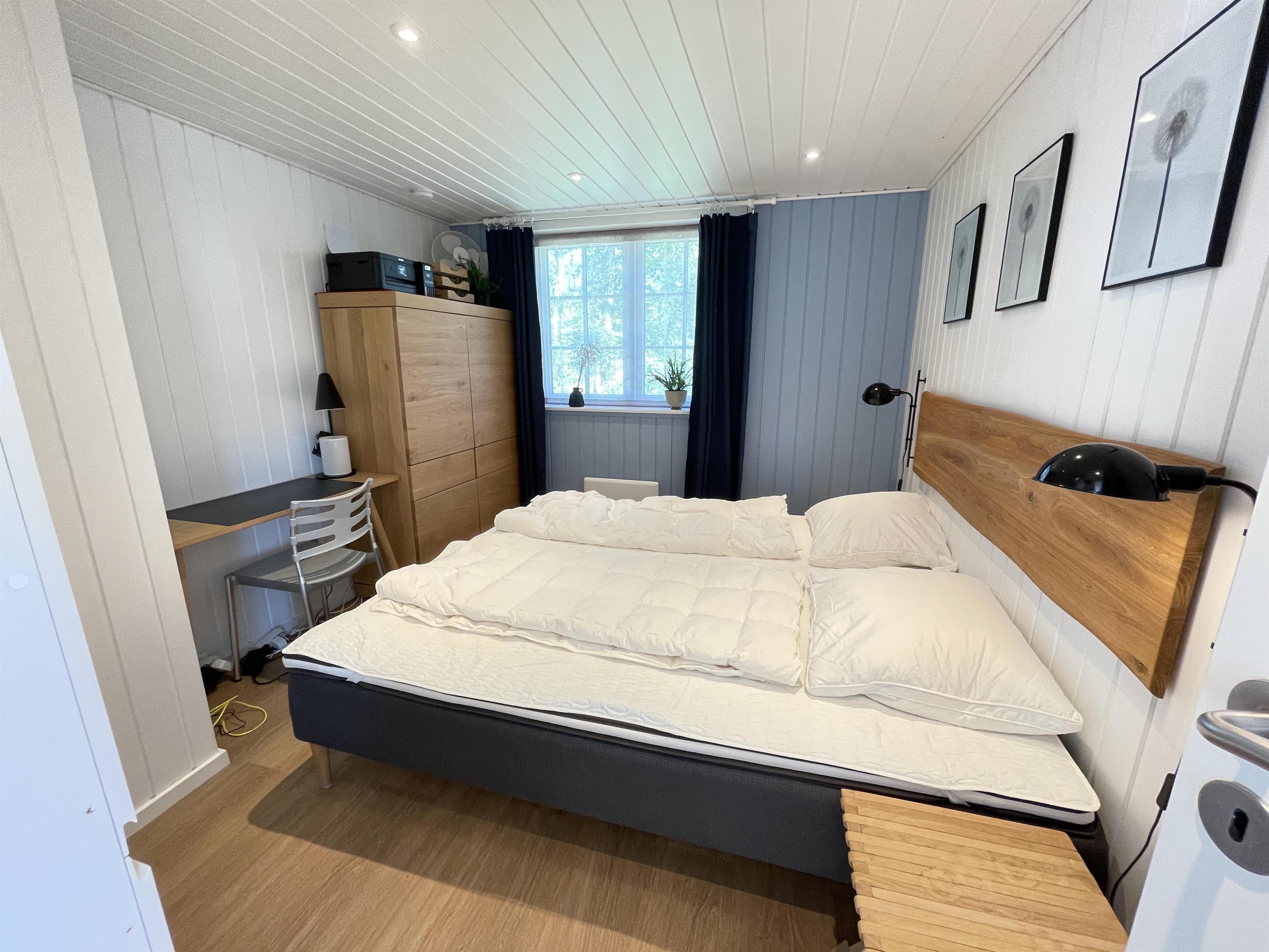 Der er tre soveværelser, som er godt indrettet med familiær hygge for øje. To af dem inviterer med komfortable dobbeltsenge, mens det tredje rum, som vi kalder familierummet, byder på god fleksibilitet. I dette rum er der en specialbygget soveløsning, som omfatter en dobbeltseng og en overkøje med plads til 2 - og eventyrlystne børn kan se frem til en magisk hems, der kan fungere, som en hyggelig hule øverst i samme rum - (eller som et par ekstra sovepladser til mindre børn).