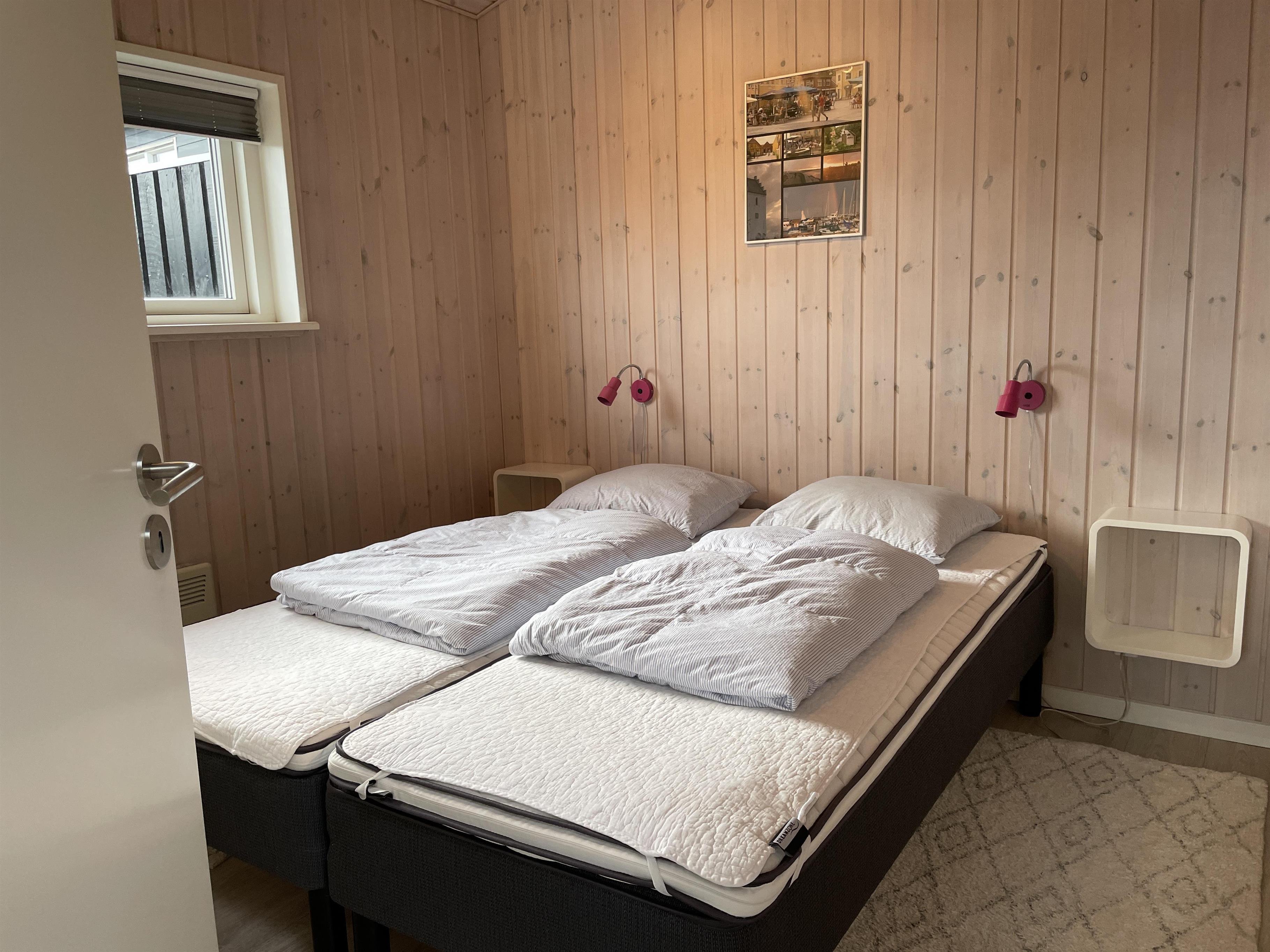 Sommerhuset har to rummelige soveværelser, som begge tilbyder masser af plads til at slappe af og nyde ferien. Indretningen er gennemført med en sammenhængende blå farvetone, der binder hele huset sammen på en harmonisk måde og samtidig bringer havets ro og skønhed ind i hjemmet. Denne blå tråd skaber en afslappende og maritim stemning, der gør det nemt at føle sig hjemme. Huset har et flot badeværelse med bruseniche og vaskemaskine.