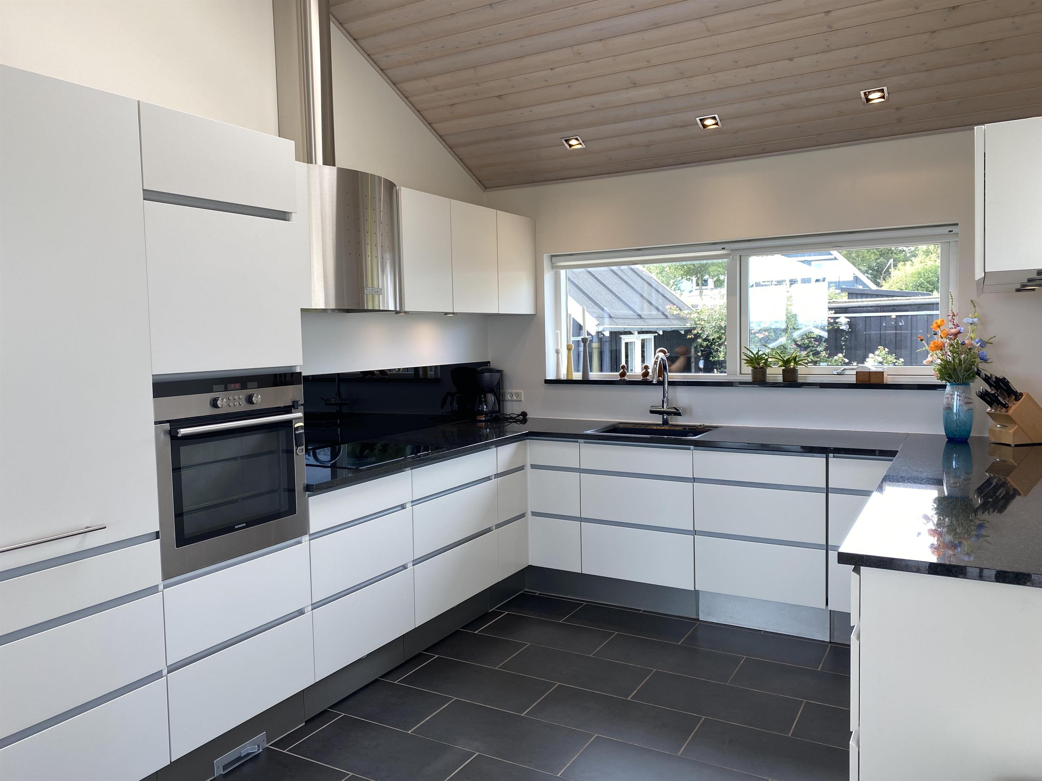 Køkken, spisestue og stue er designet som et stort, åbent rum, hvorfra du kan nyde en betagende udsigt over Kattegat. Fra sofaen kan du beundre det smukke panorama, se Frederikshavn i horisonten og følge med i skibstrafikken. Køkkenet er topmoderne med en imponerende granitbordplade og alt det nødvendige køkkenudstyr. Her er også installeret en Quooker, der giver kogende vand på et øjeblik. I annekset finder du et ekstra køleskab med fryser, ideelt til ekstra opbevaring. Badeværelset er lyst og elegant med store skuffeskabe og et dejligt spabad, hvor du kan slappe af efter en dag fyldt med aktiviteter.