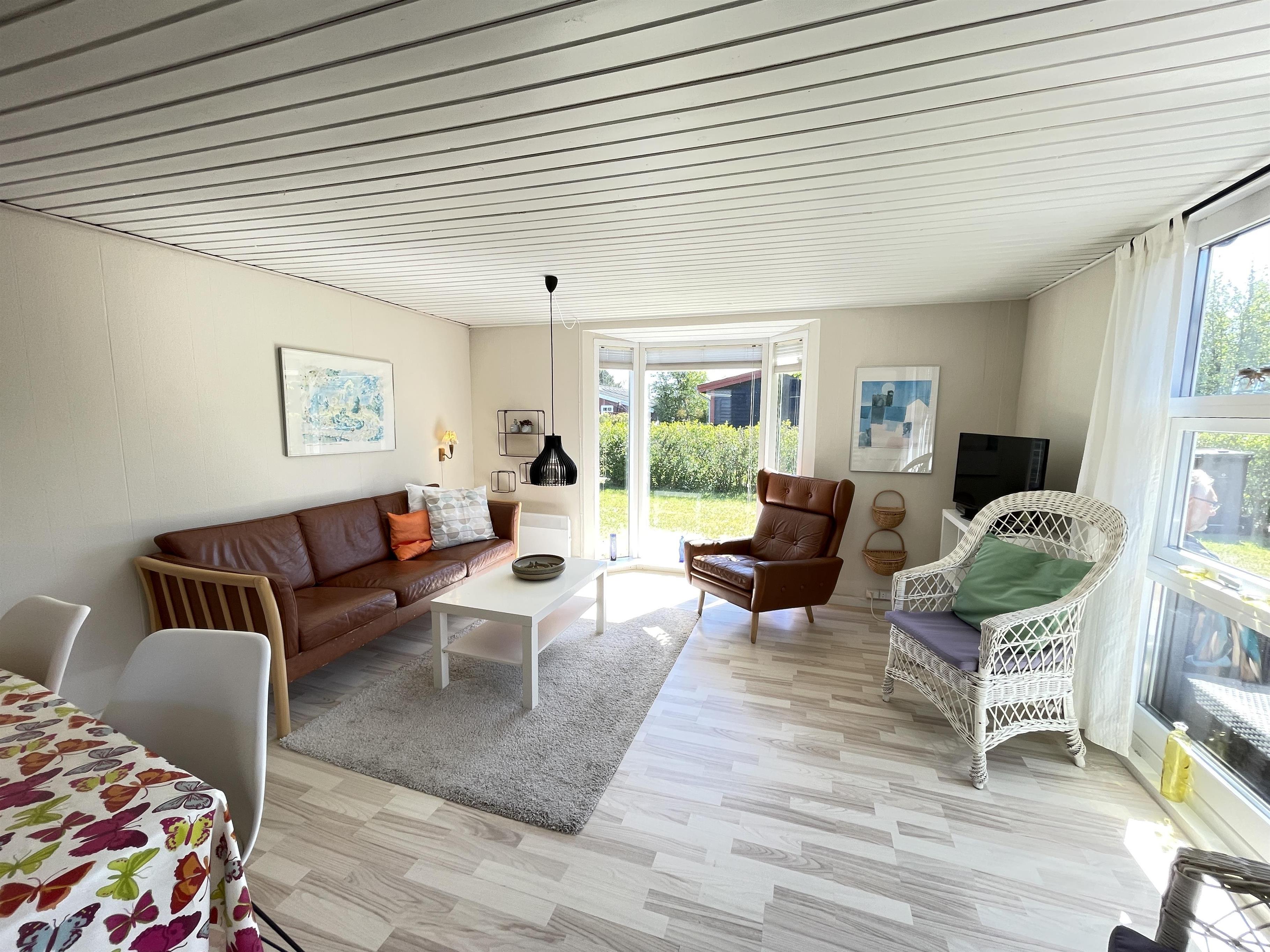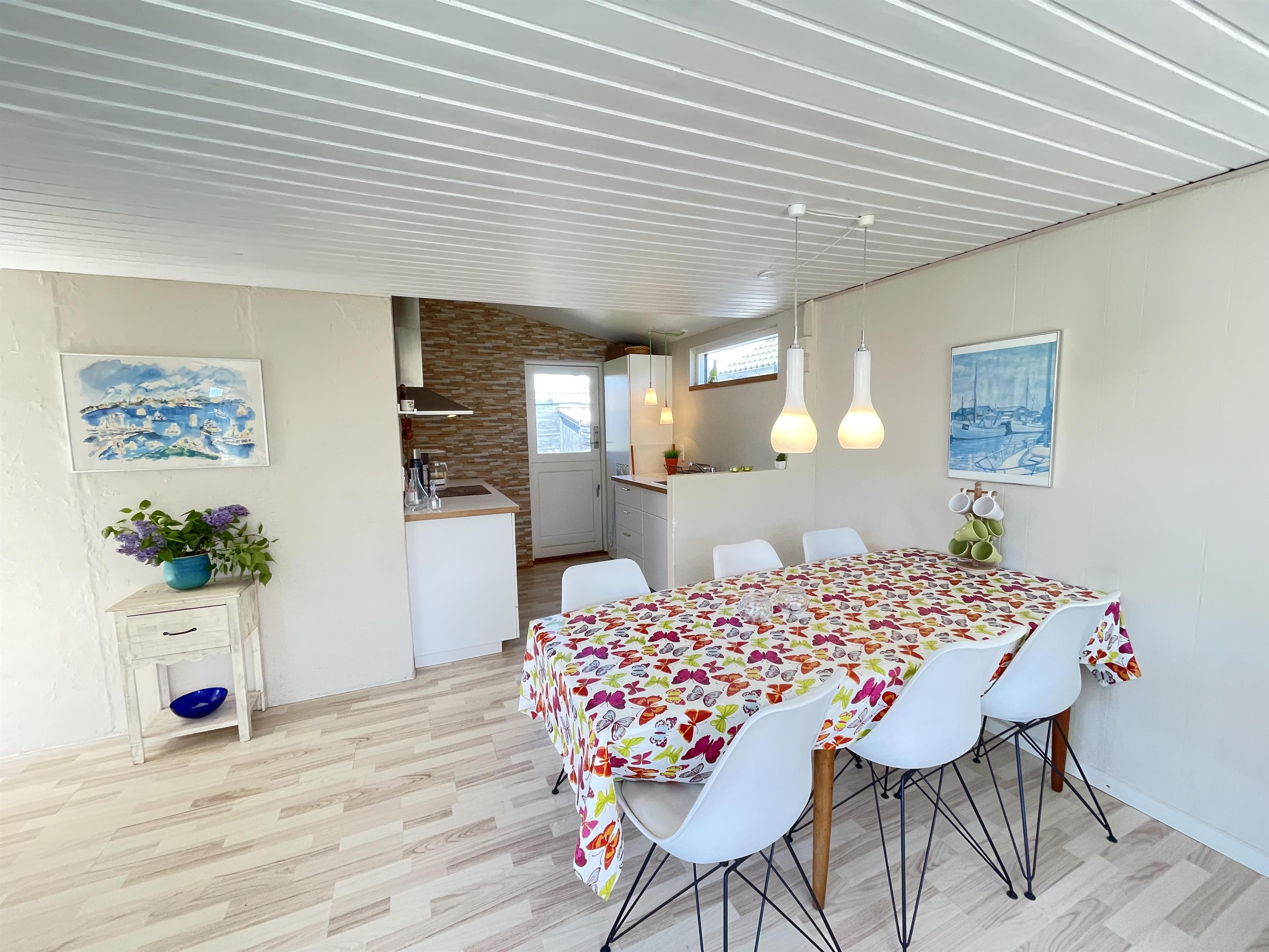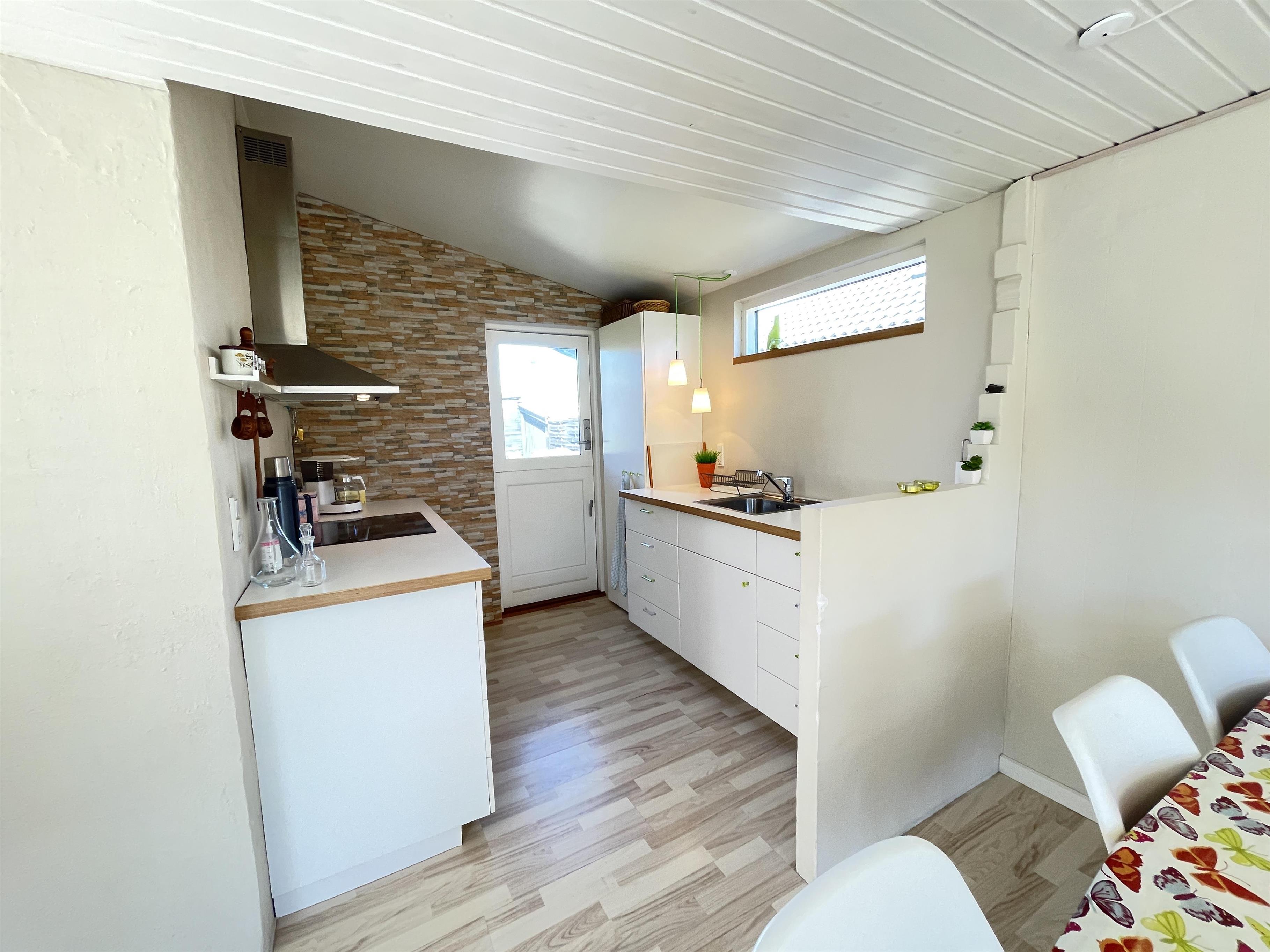 Huset er super funktionelt, med tre soveværelser, hvor sengepladserne er fordelt i 1xdobbeltseng, 1x3/4 seng og 1xkøjeseng. Køkken og stue går ud i et og i stuen er terrassedør og en lille karnap, som giver et dejligt kig ud til haven. Huset har et flot moderniseret badeværelse med bruseniche og har generelt en flot indretning og en god stemning med mange fine detaljer. Der er gulvvarme i både badeværelse, gang og køkkensektionen.
