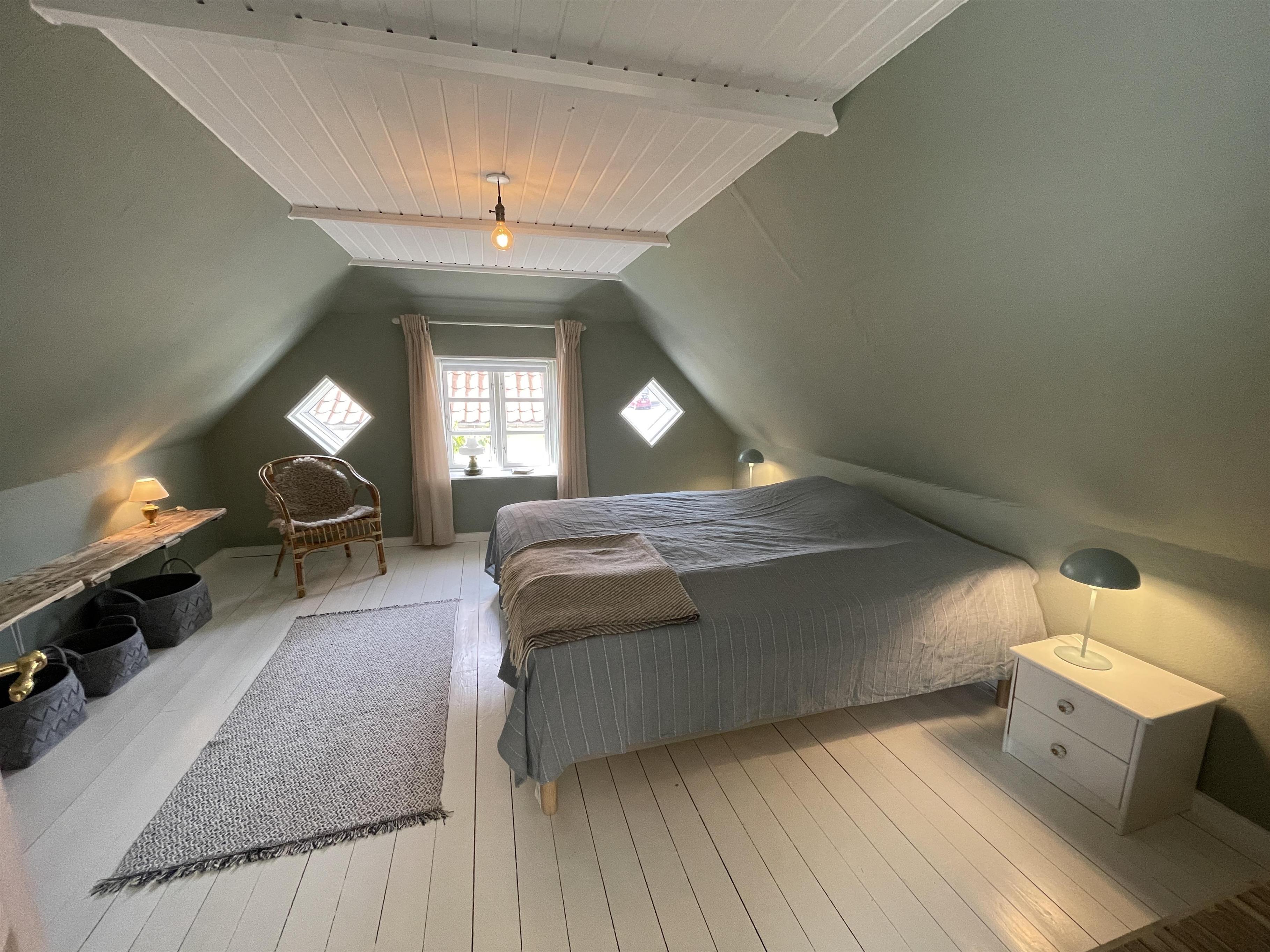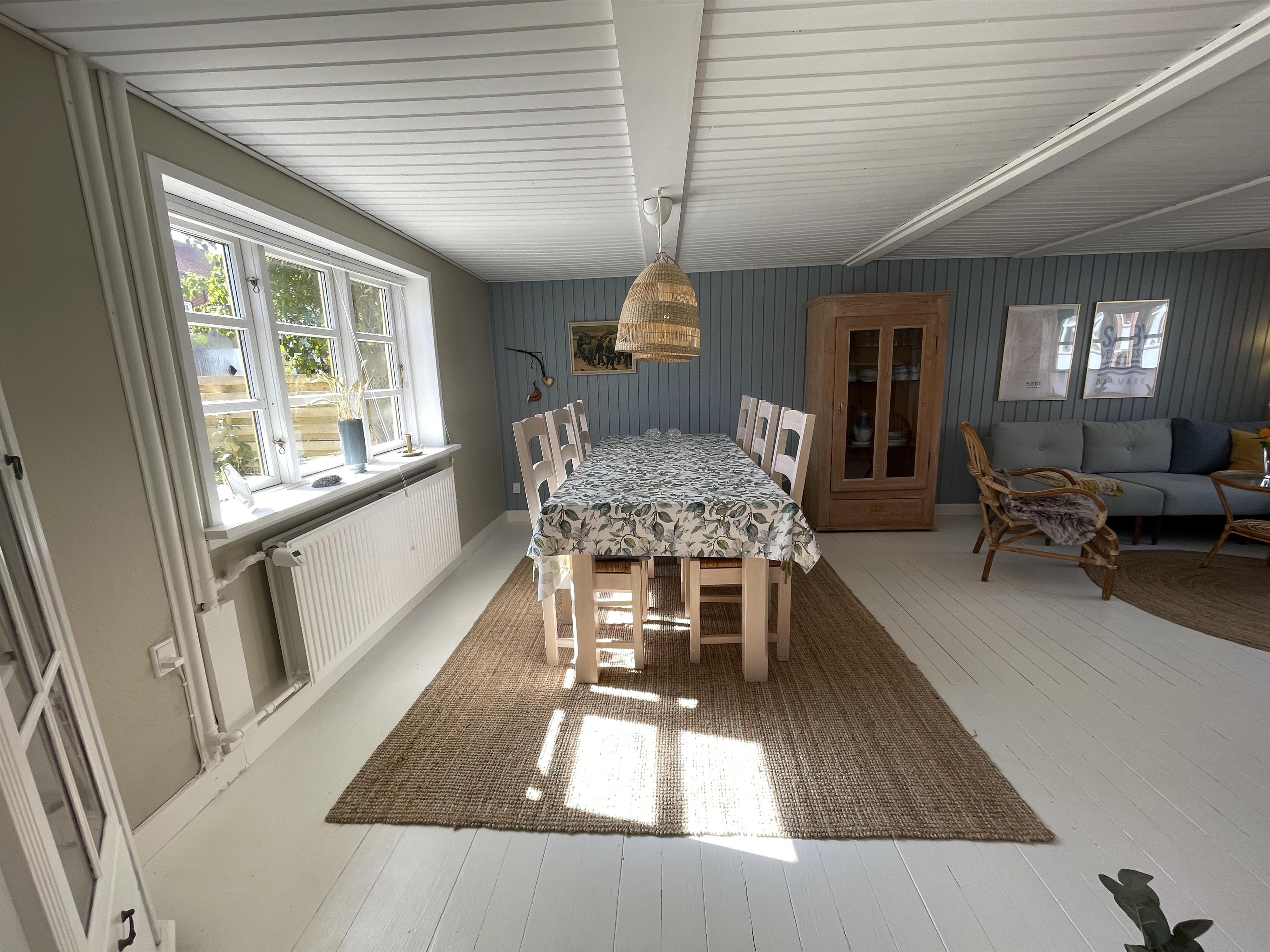 Dette charmerende byhus er nyrenoveret i 2024 og indrettet med milde farver, som på et badehotel. Det er virkelig et rigtig fint og indbydende hus. Boligarealet er 124 m2 og her er plads til 6 personer. Huset er i 2 etager og det er indrettet med 3 gode soveværelser. 1 værelse i stueetagen og 2 værelser på 1. sal. 2 værelser er med dobbelt senge og 1 værelse med 2 x enkeltsenge.