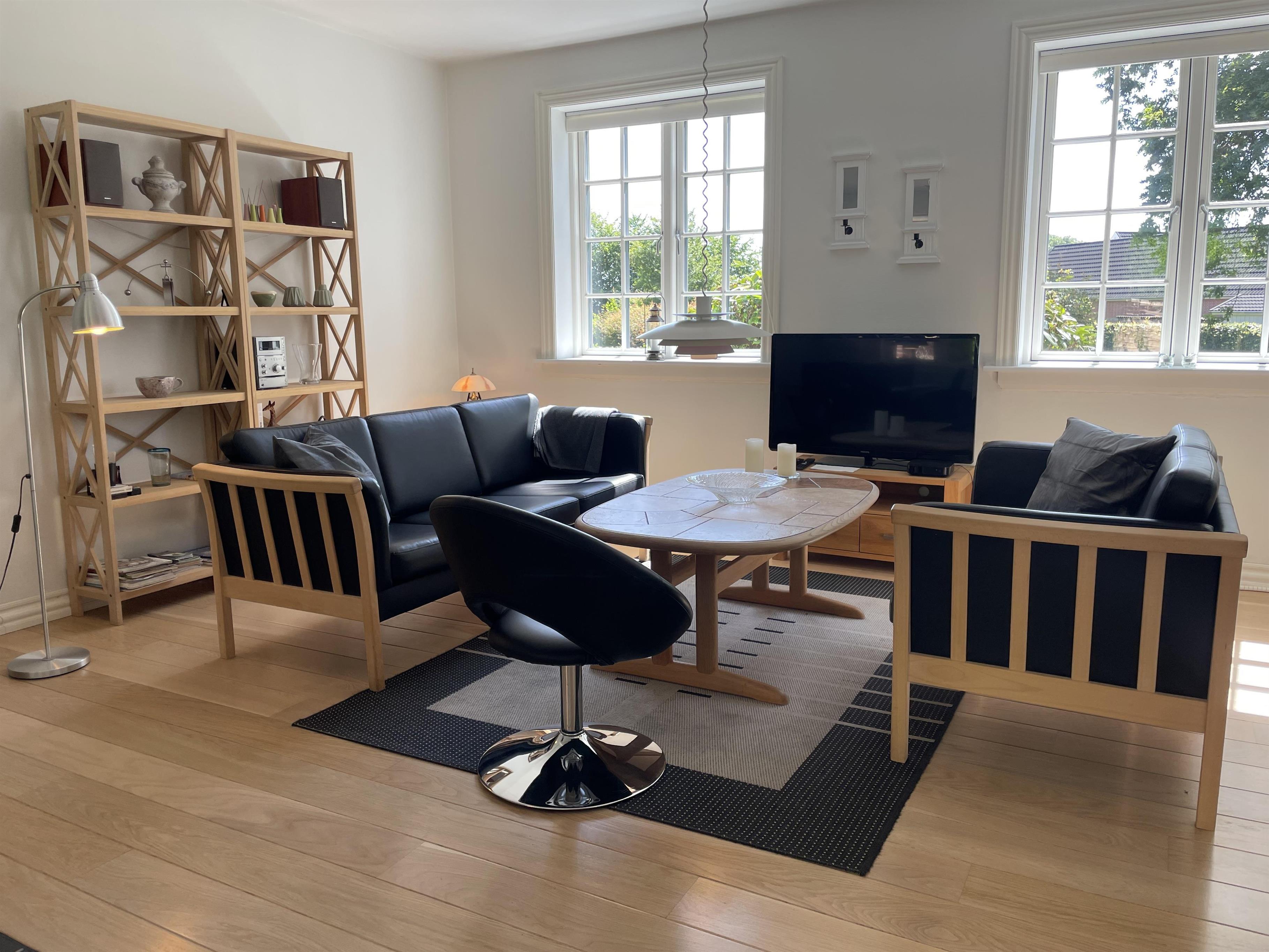 Til lejligheden hører eget haveområde. Her er der en hyggelig terrasse med gode havemøbler, så man kan sidde og slappe af og eventuelt grille sin mad, og der er en god græsplæne, som kan bruges til leg og anden havehygge.