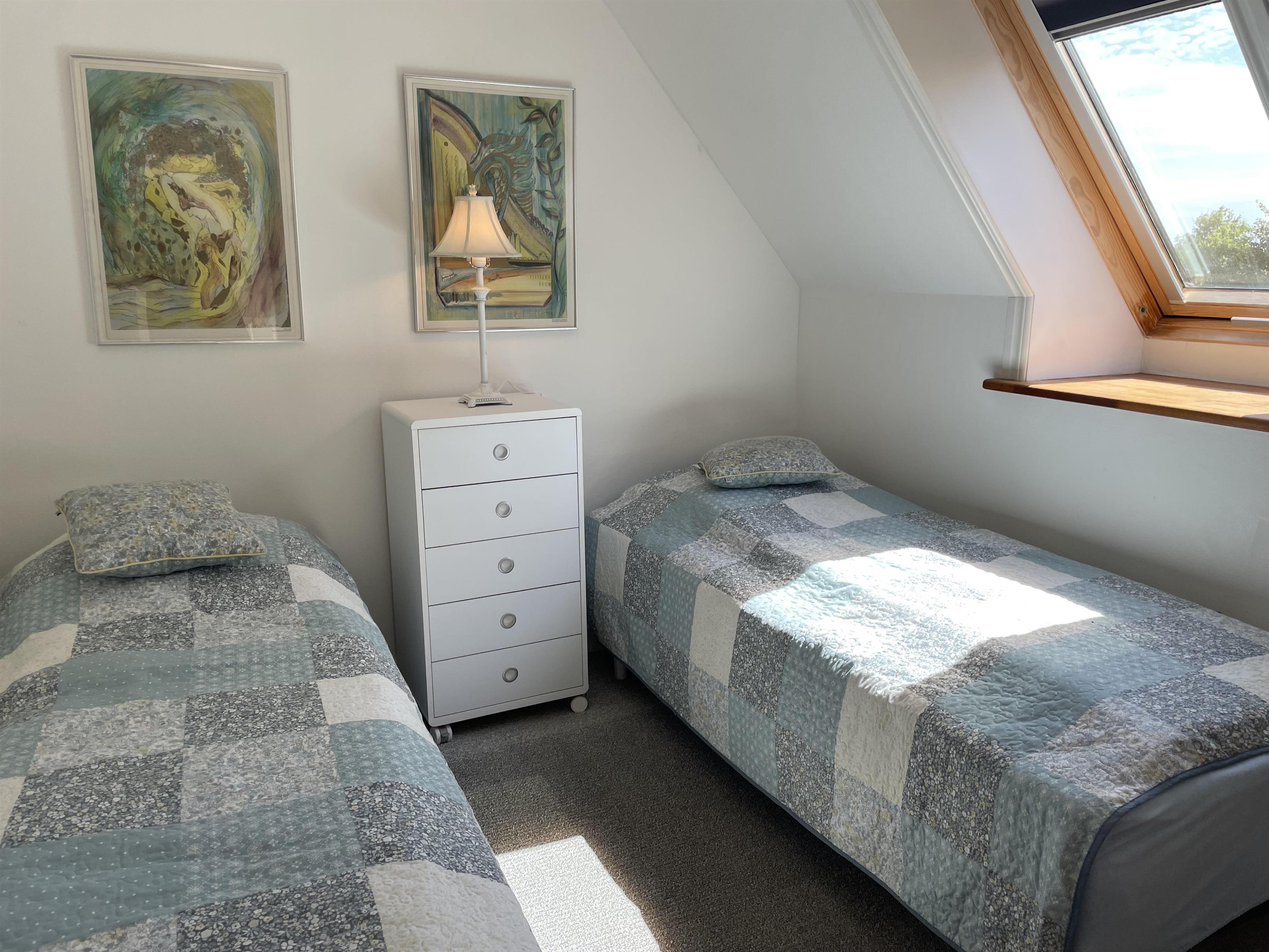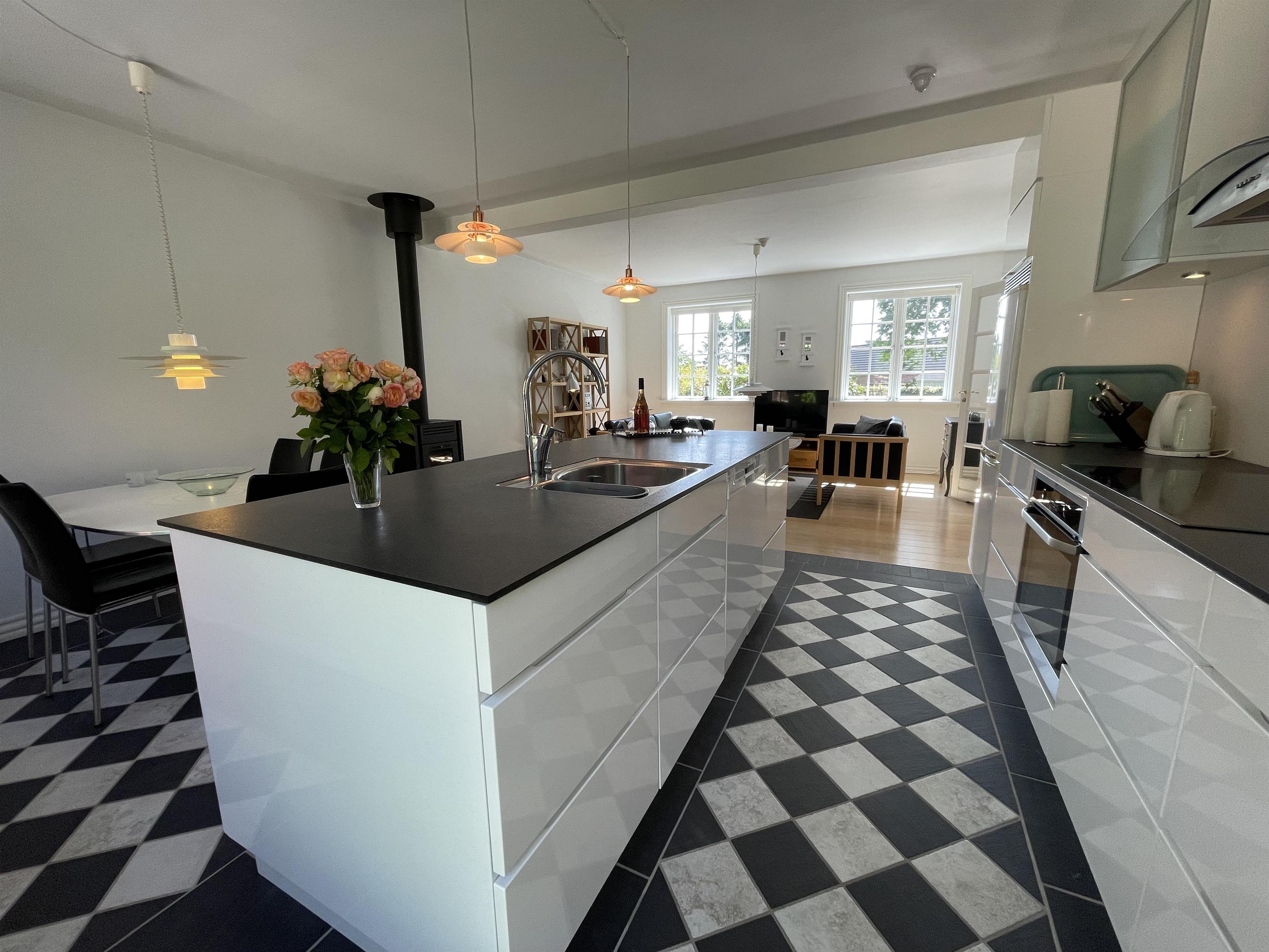 Lejligheden er renoveret i 2015 og fremtræder lys og moderne. Den indeholder et utroligt fint og veludstyret køkken, så der er god mulighed for selv, at lave mad, som kan nydes ved det hyggelige spisebord, hvorfra der gennem sprossevinduerne er udsyn til en smuk "gammel" have. Derudover er der en sofagruppe i læder, sofabord og tv, som kan benyttes, når dagen går på hæld, og I har lyst til at trække jer indenfor. I entréen er en trappe, der fører op til soveværelserne. Der er 2 soveværelser med enkeltsenge, som i begge rum kan skubbes sammen til en dobbeltseng, hvis man ønsker det. På repos står en sovesofa, der giver mulighed for en ekstra soveplads, og der er et godt badeværelse i stueplan.