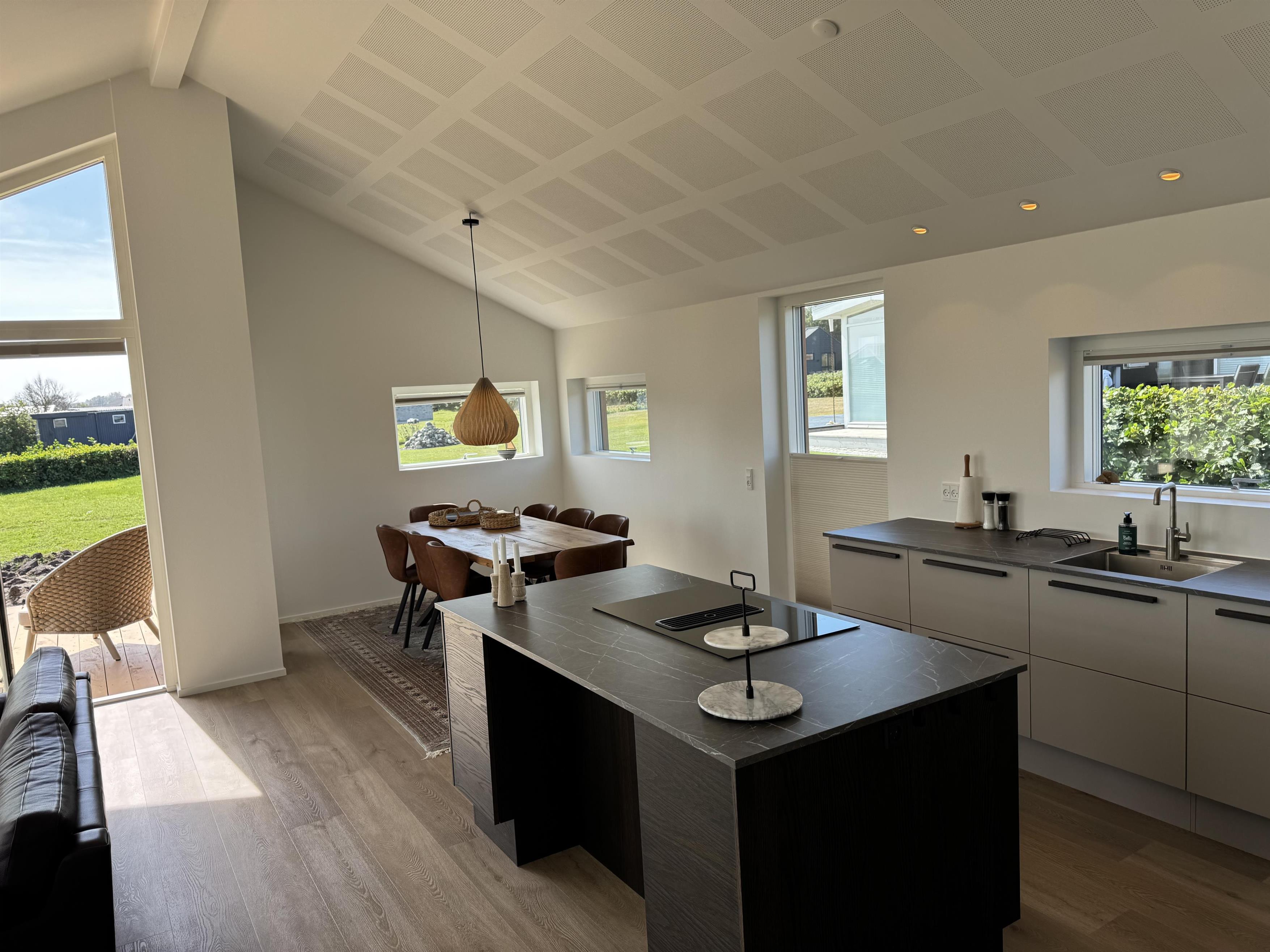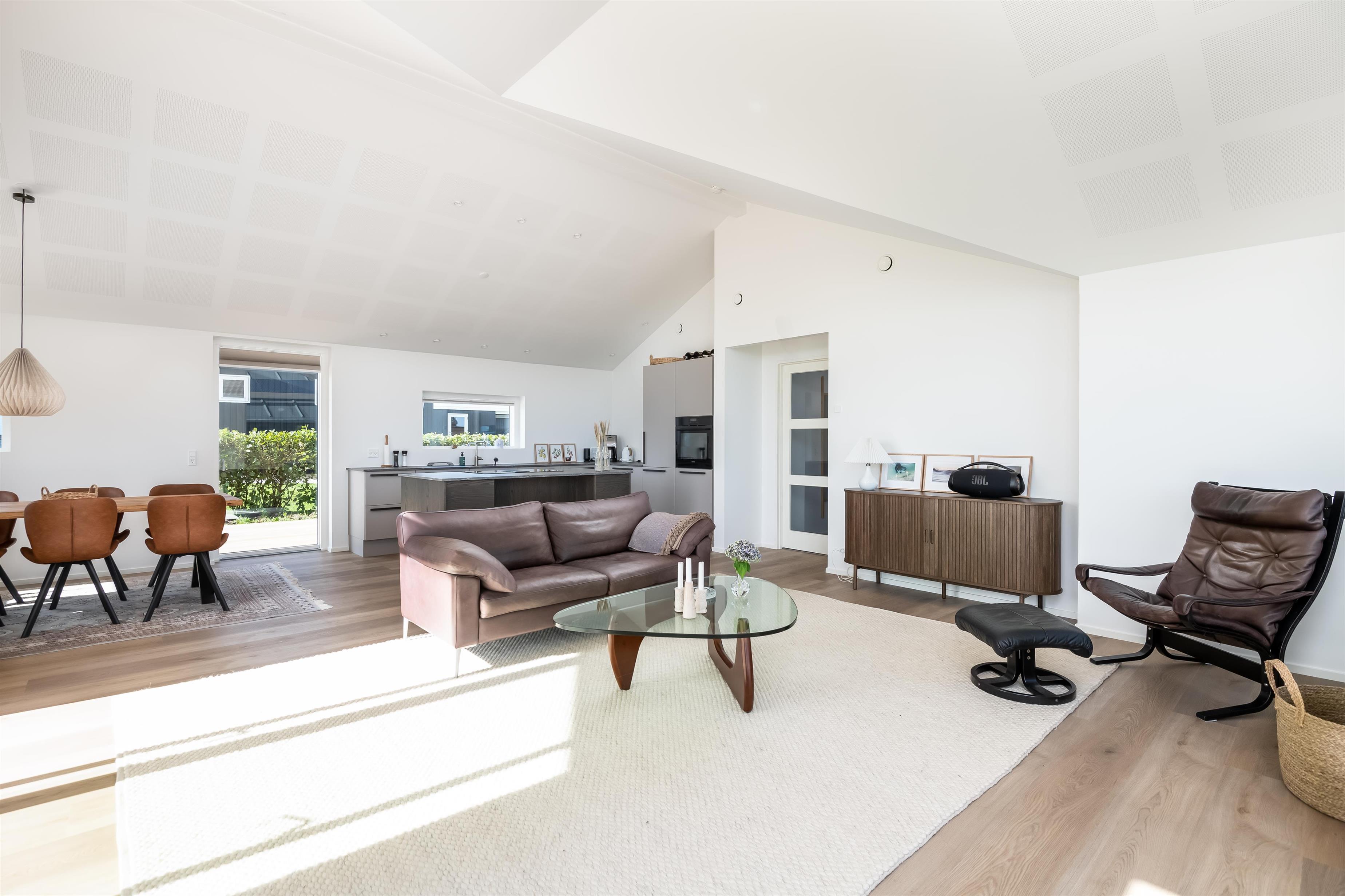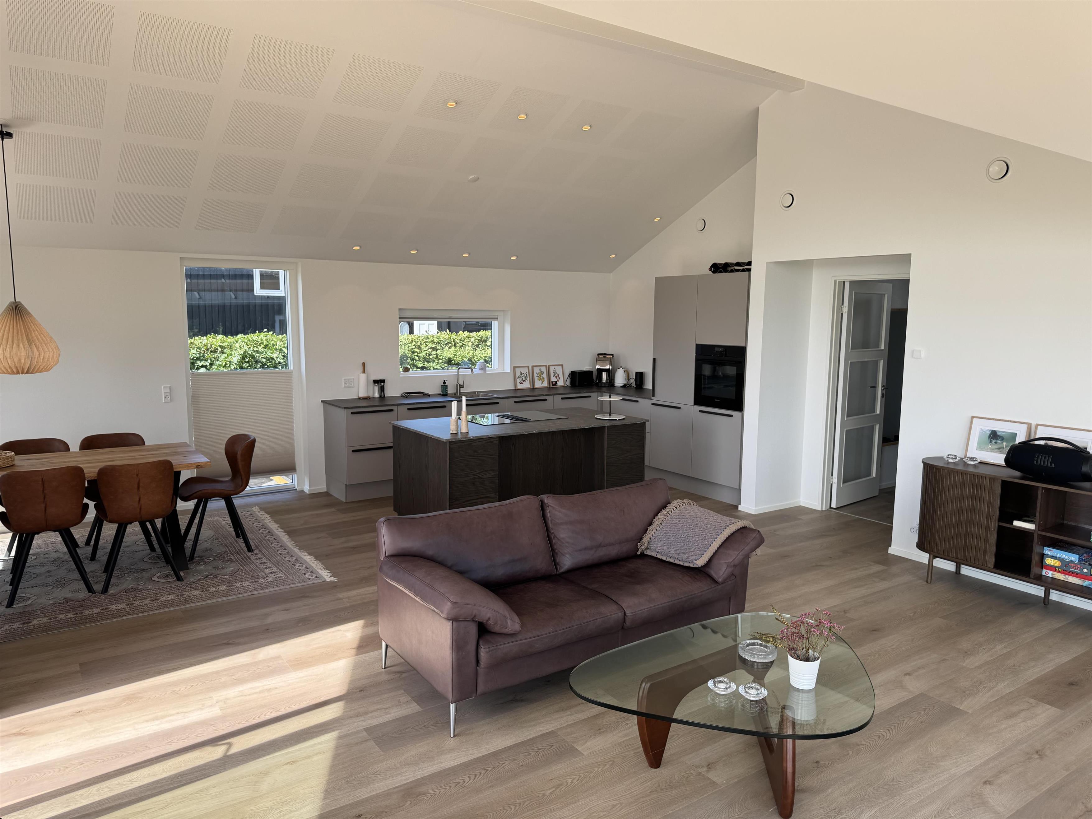 Huset indbyder til samvær ude som inde, fra det store køkkenalrum er der direkte adgang til den store træterrasse hvor solen kan nydes. Derudover er der et aktivitetsrum med bordtennisbord.