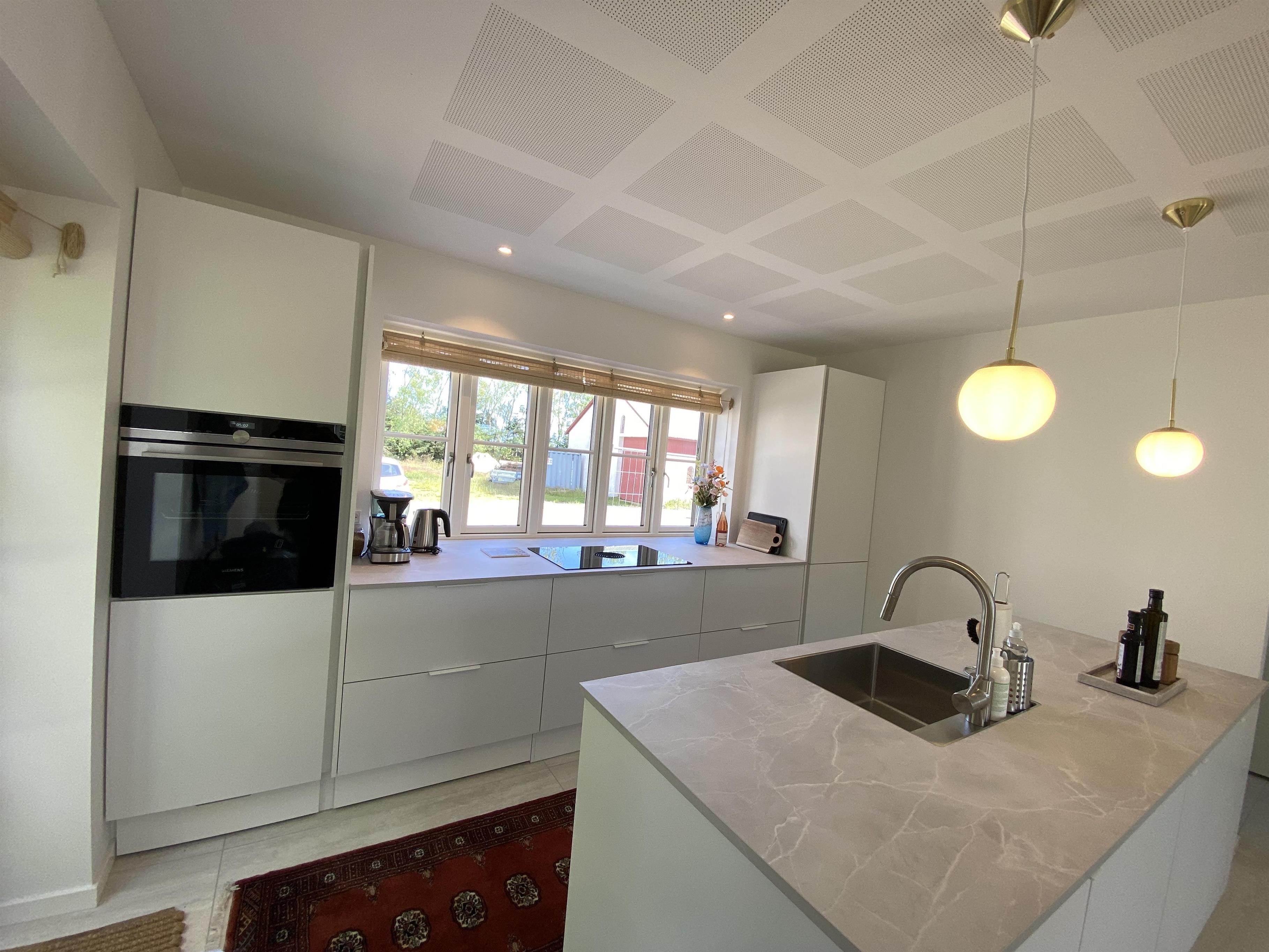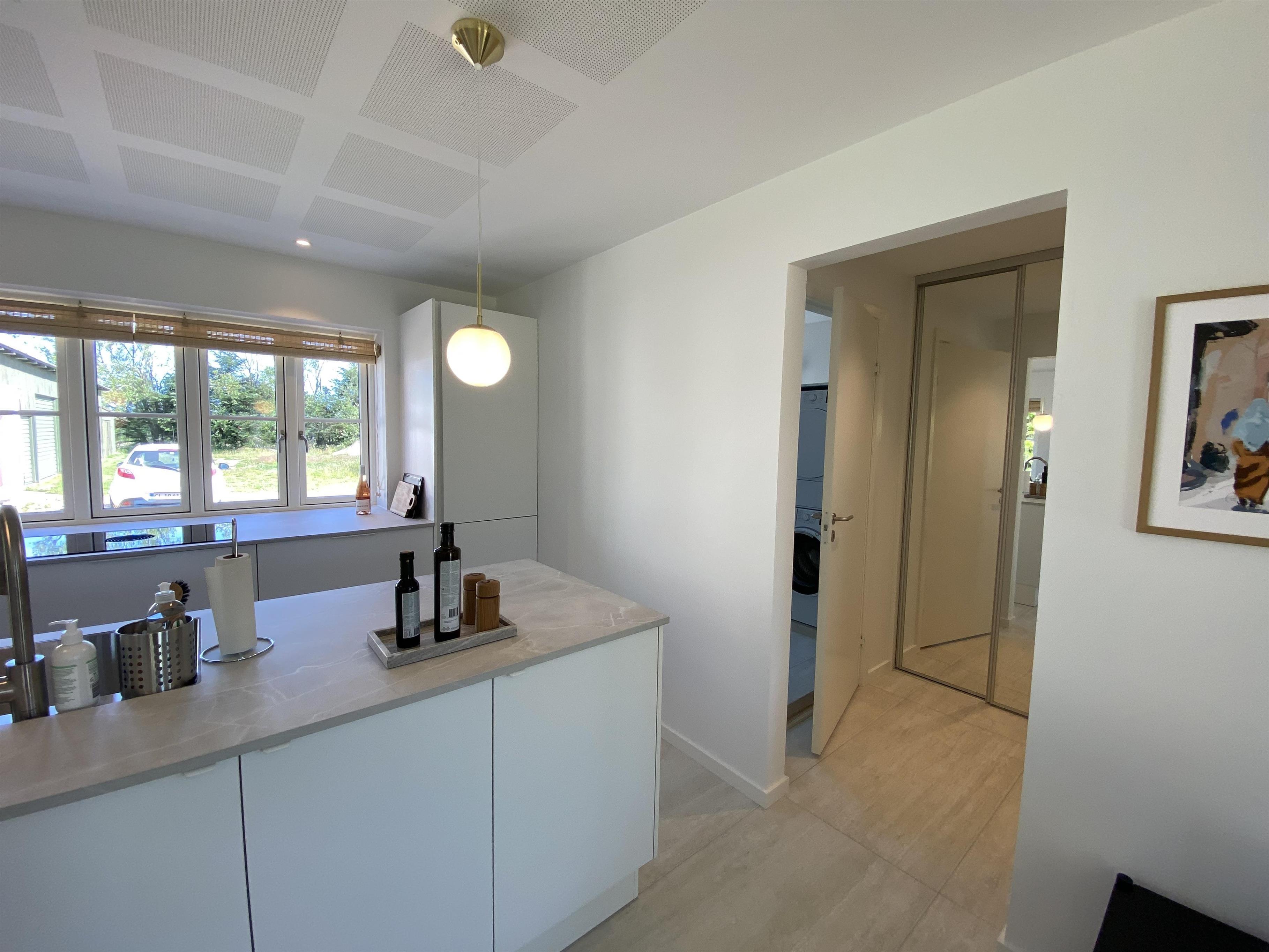 Boligen fordeler sig over to etager. I stueetagen mødes du af et stilfuldt, nyt moderne køkken, som er et samlingspunkt med plads til at lave lækker mad og nyde måltiderne sammen ved den skønneste spiseplads. Det bløde sofahjørne finder du i hjørnet af rummet ved trappeopgang. Her er plads til afslapning og samvær. Du finder også et lækkert badeværelse med bruseniche, vaskemaskine og tørretumbler i stueplan.
