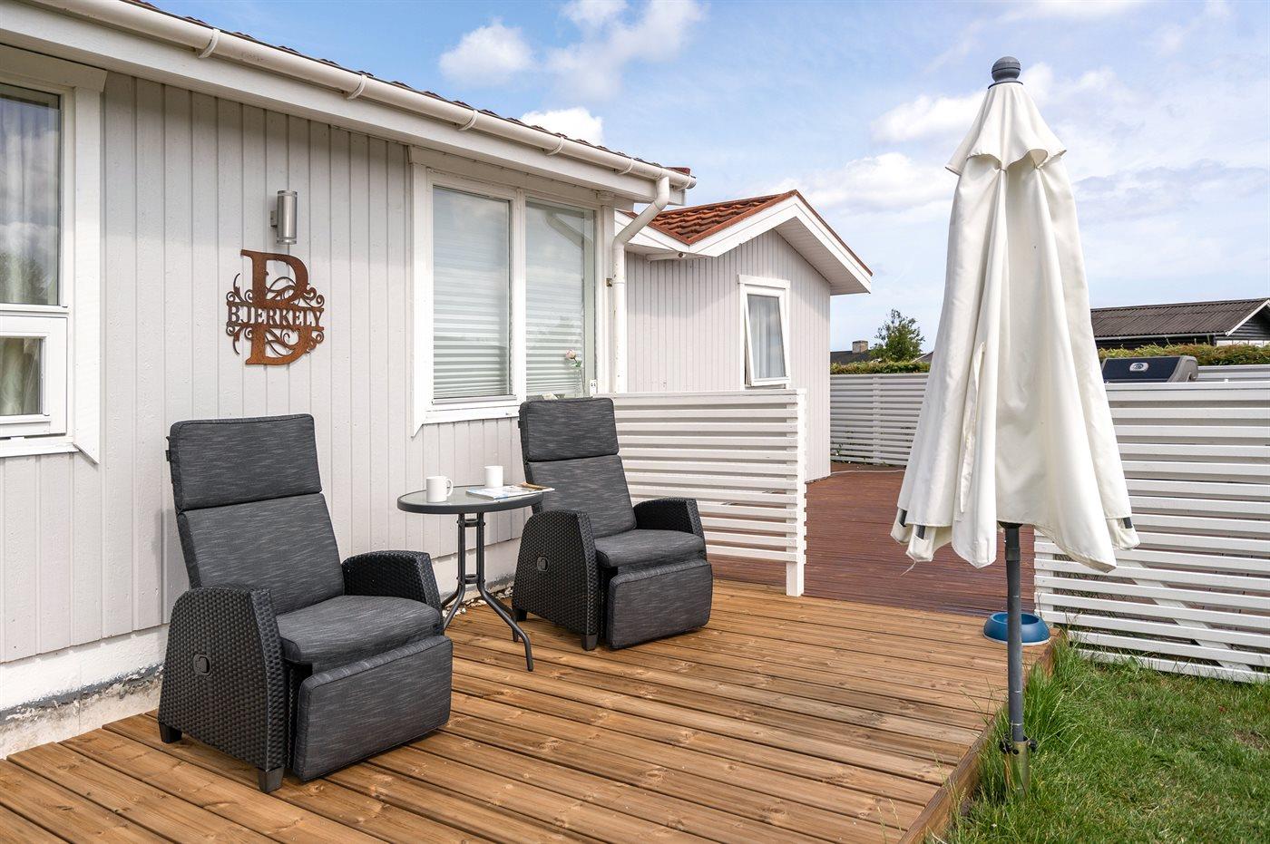Ferieboligen er beliggende på en 500 m² stor naturgrund. Der er 250 m til havet. Nærmeste forretning er beliggende i en afstand af 2000 m. Til ferieboligen hører 75 m² terrasseareal. Grill til rådighed. Parkering ved ferieboligen.