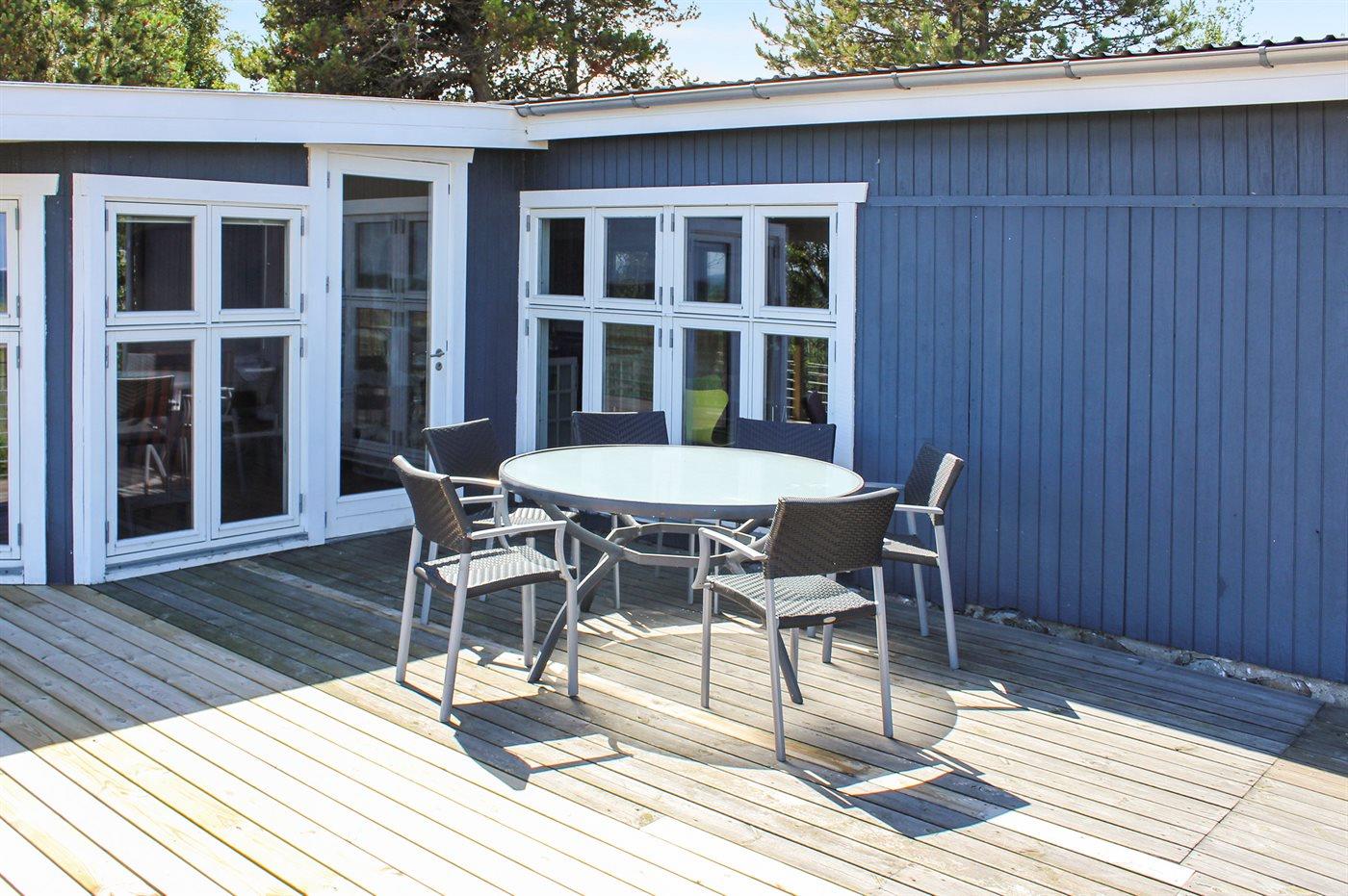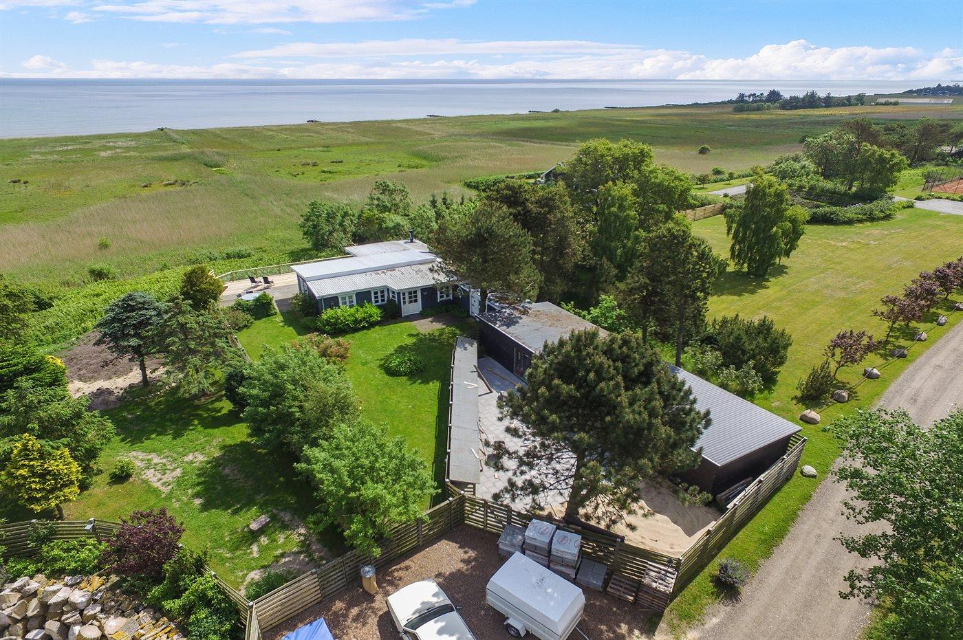 Ferieboligen er beliggende på en 400 m² stor naturgrund. Grunden er indhegnet. Der er 150 m til havet. Nærmeste forretning er beliggende i en afstand af 5500 m. Til ferieboligen hører 60 m² terrasseareal. Grill til rådighed. Parkering ved ferieboligen.