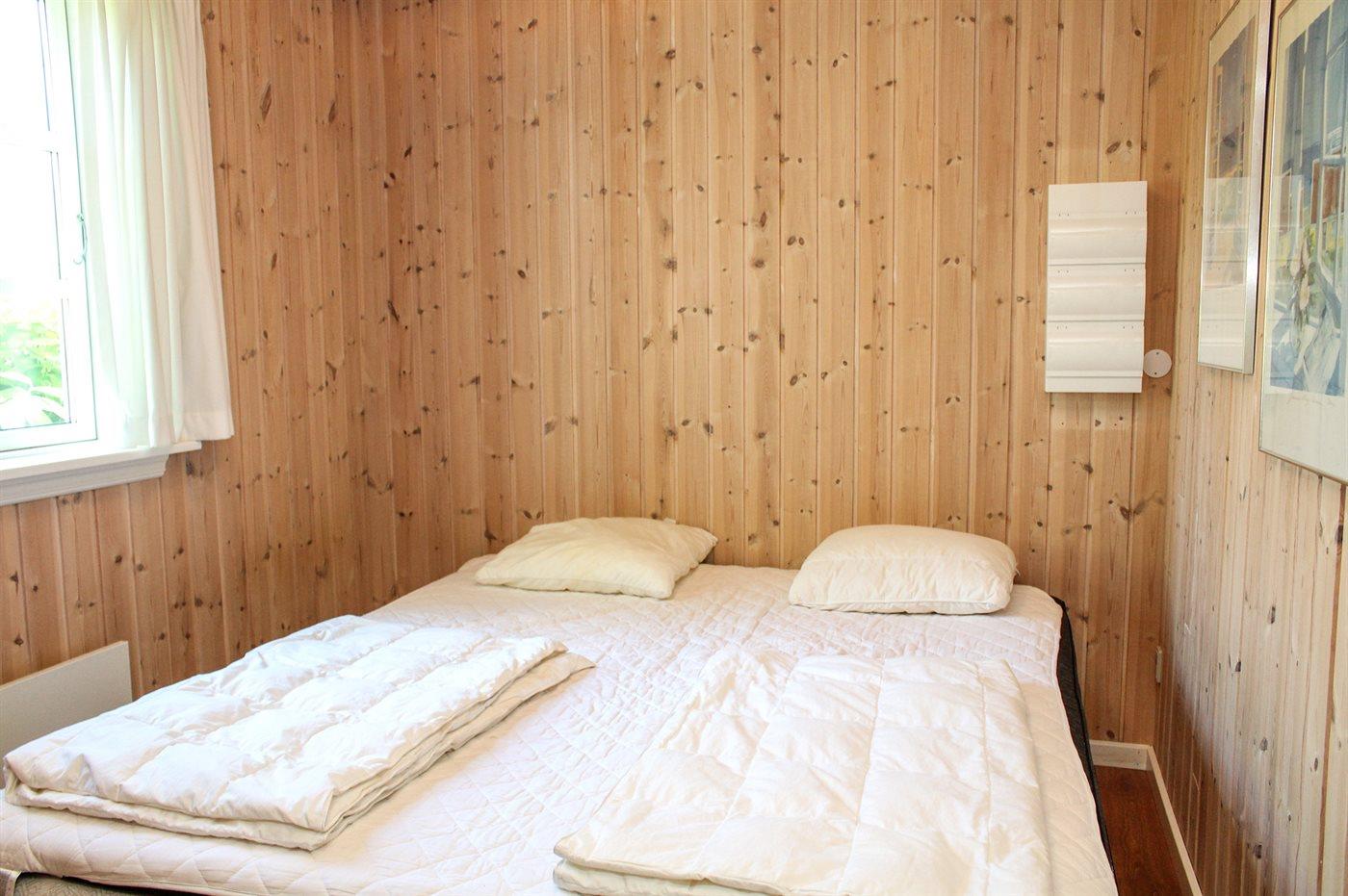 Der er i alt 2 soveværelser. Sovepladserne fordeler sig på: 2 sovepladser i dobbeltseng. 4 sovepladser i enkeltsenge. Derudover er der 1 stk. barneseng.