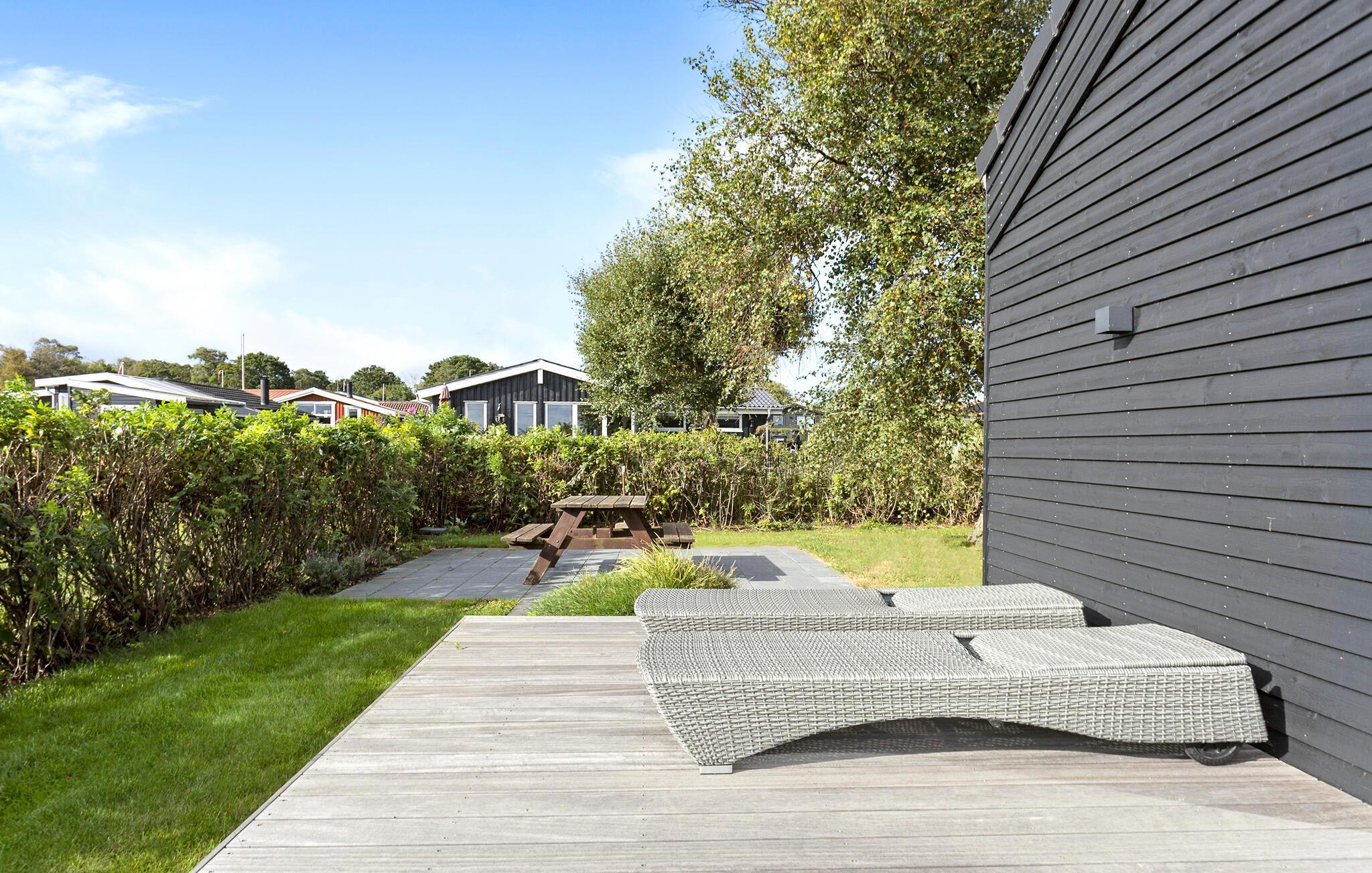 Terrassen inviterer til afslapning. Her kan I sidde i komfortable havemøbler og nyde solen, mens I ser jeres børn lege og tumle i haven.