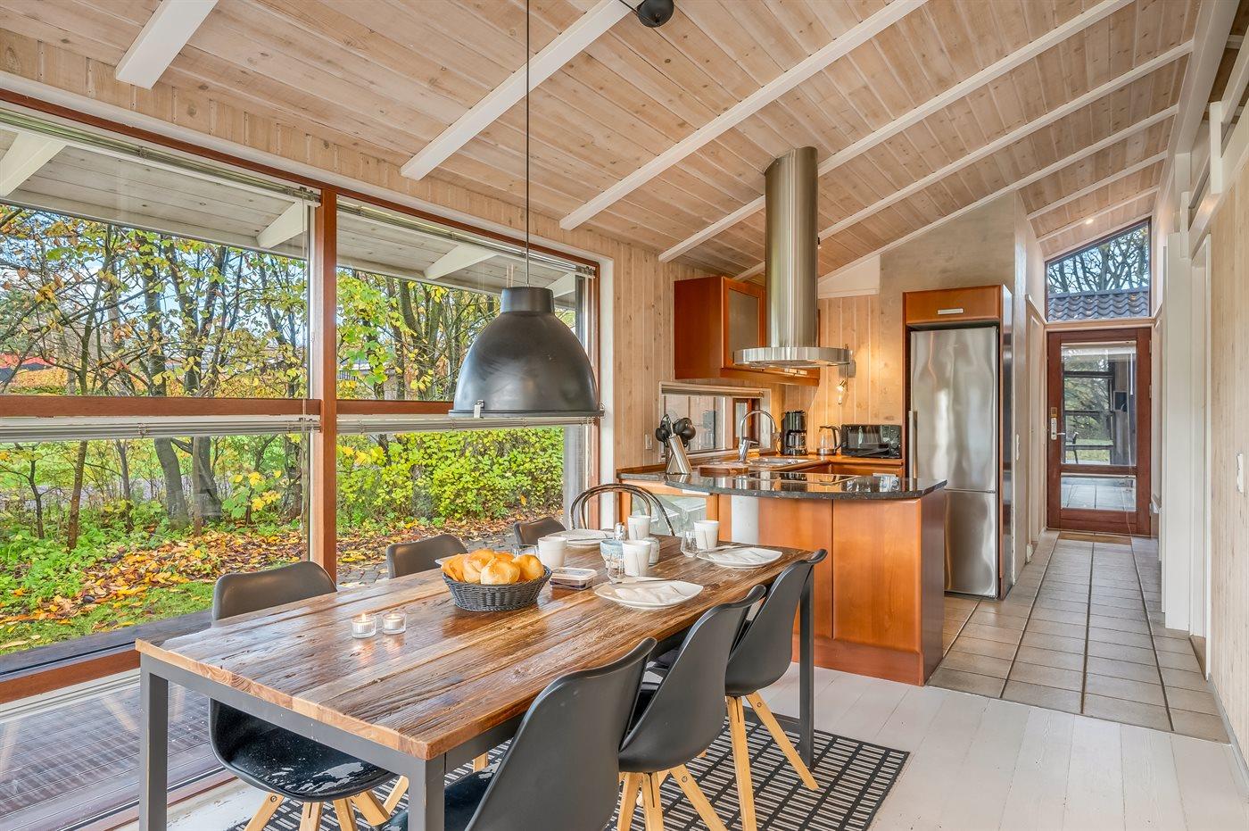 Køkkenet er udstyret med 1 køleskab. Der er 4 keramiske kogeplader, varmluftovn, mikrobølgeovn samt opvaskemaskine.