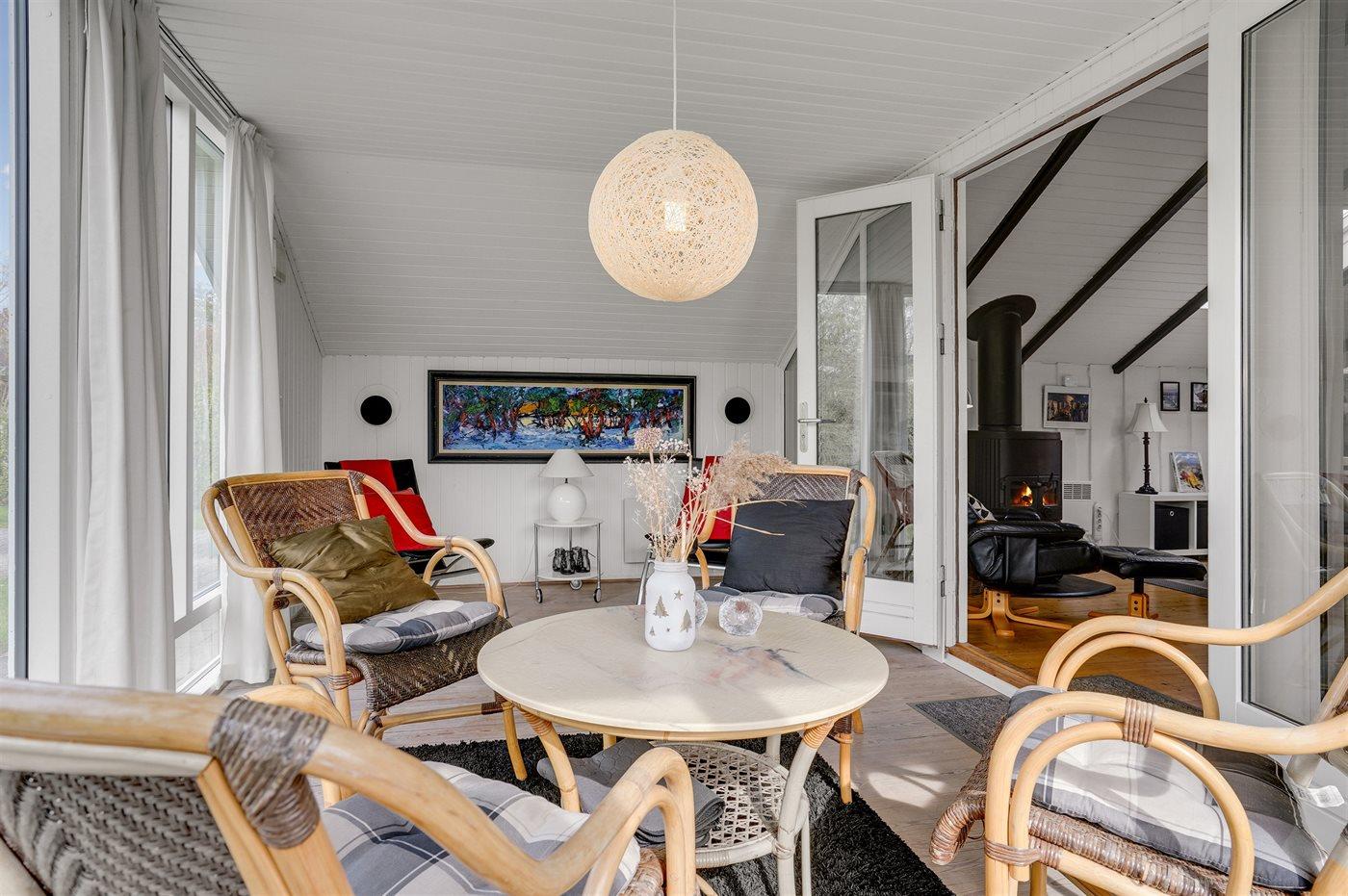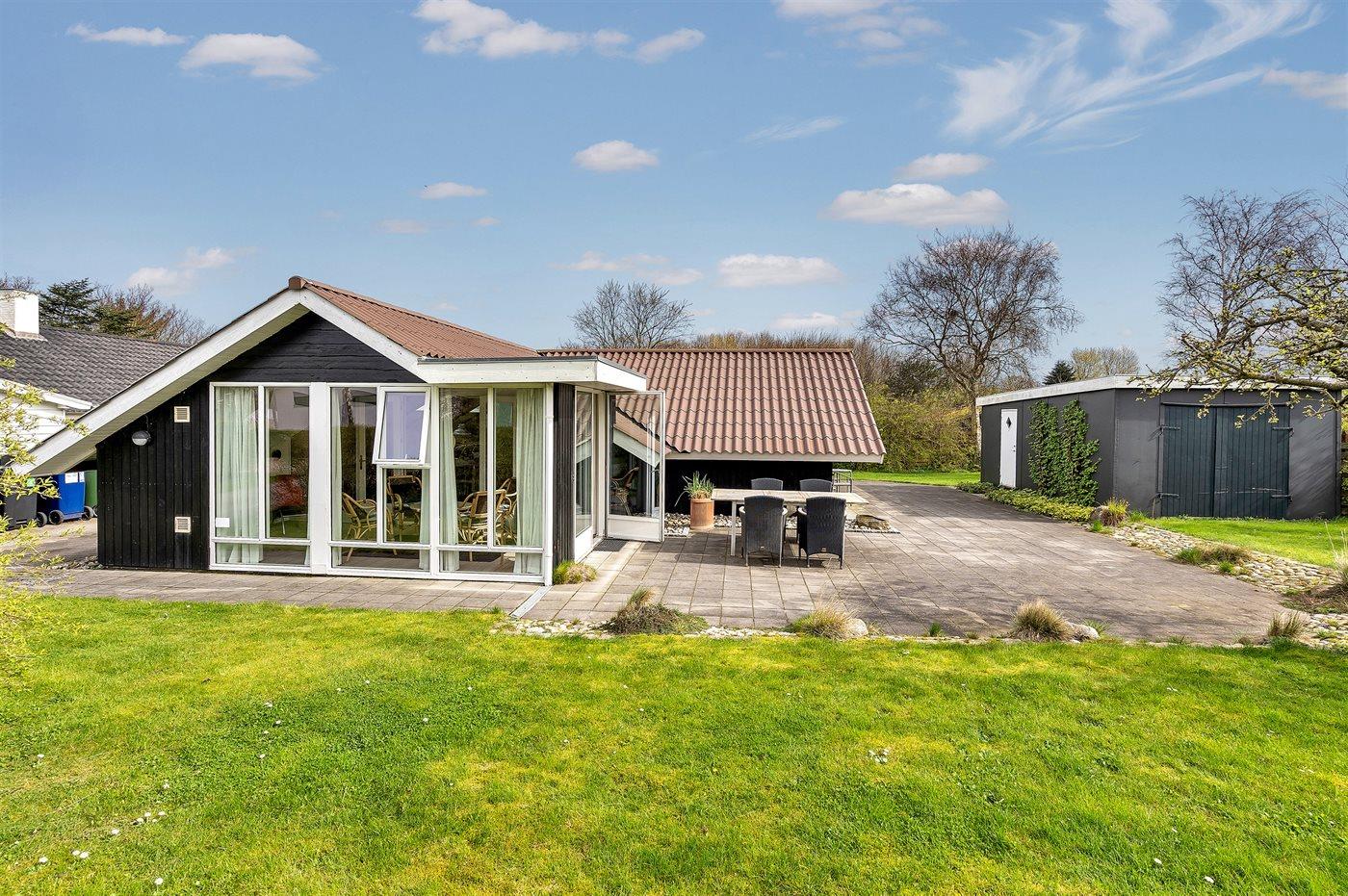 Ferieboligen er beliggende på en 825 m² stor naturgrund. Der er 6000 m til havet. Der er 250 m til fjorden. Til ferieboligen hører åbent terrasseareal. Der er carport til rådighed. Parkering ved ferieboligen.