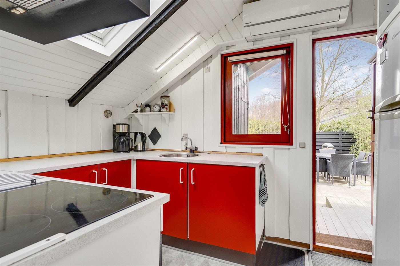 Køkkenet er udstyret med 1 køleskab. Der er 4 keramiske kogeplader, varmluftovn, mikrobølgeovn.