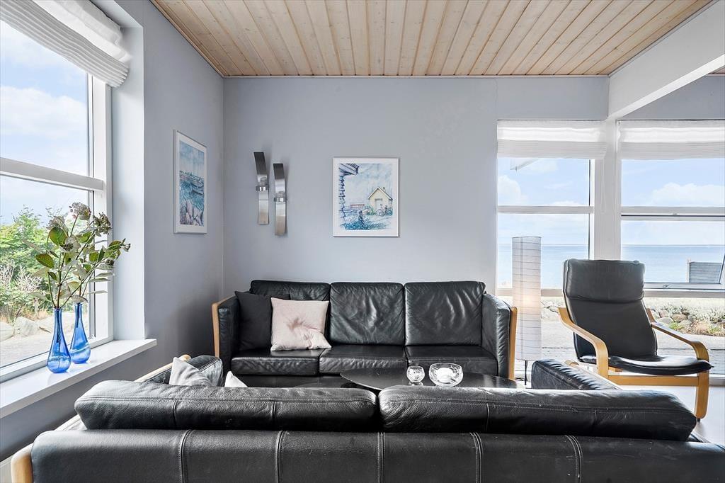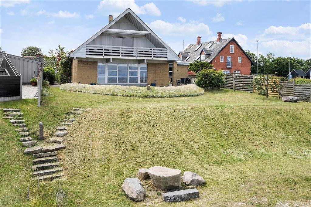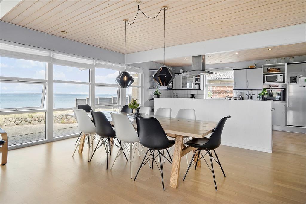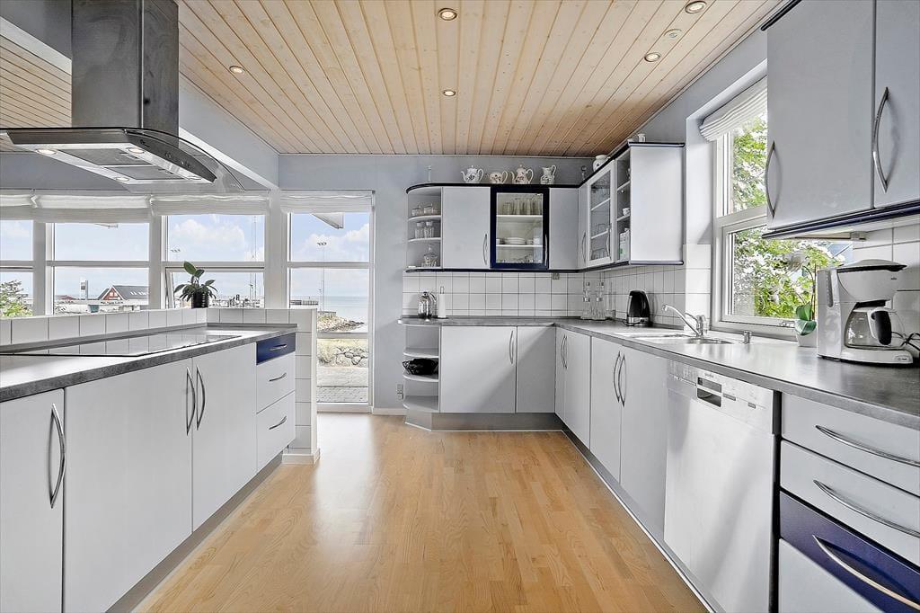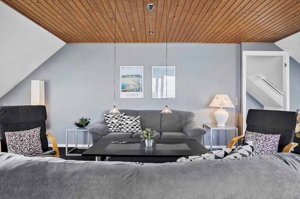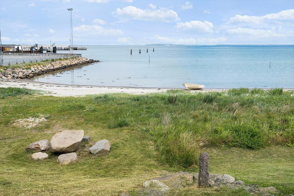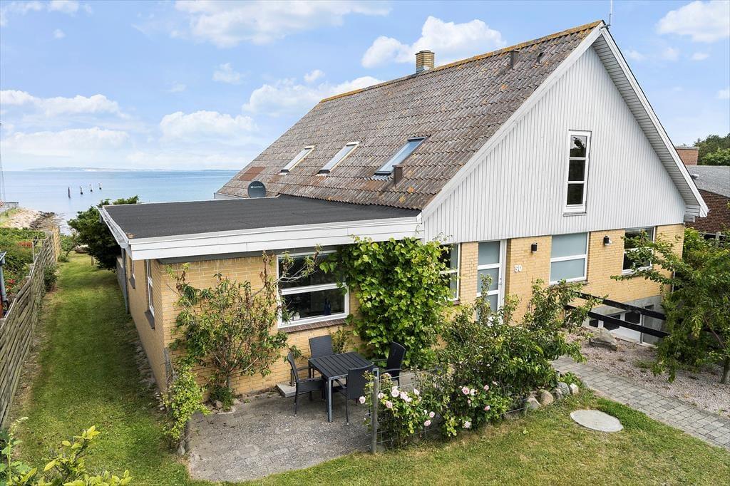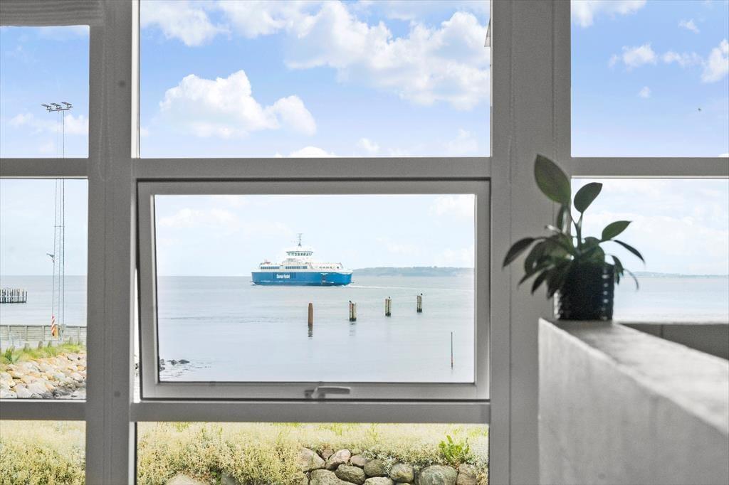 Hop af færgen og to minutter efter står I ved hoveddøren til sommerhuset, og ferien kan begynde. Sommerhuset her er i 2 etager og rummer 5 værelser med hver sin dobbeltseng og herudover 2 badeværelser. Veludstyret køkken med alt hvad der skal bruges til at lave mad til mange personer. Køkkenet er i åben forbindelse med spiseplads og sofahjørne. Fra spisebordet er der flot havudsigt og I kan holde øje med færgefarten til og fra Samsø.