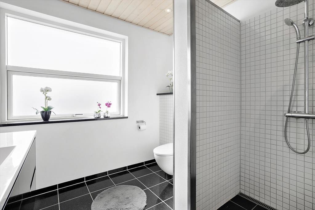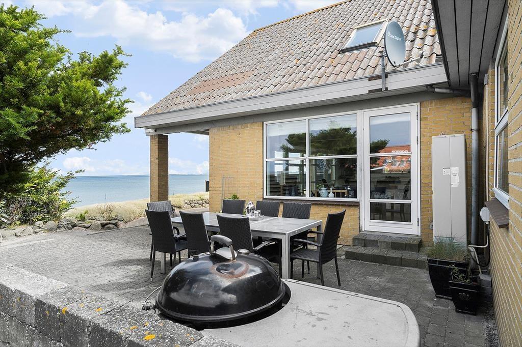 På overetagen finder I en dejlig balkon hvor morgenkaffen kan nydes med udsigt direkte ud over vandet. I grundplan er der også en dejlig stor fliseterrasse med plads til, at hele familien kan samles til aftensmåltidet, lavet på sommerhusets grill.