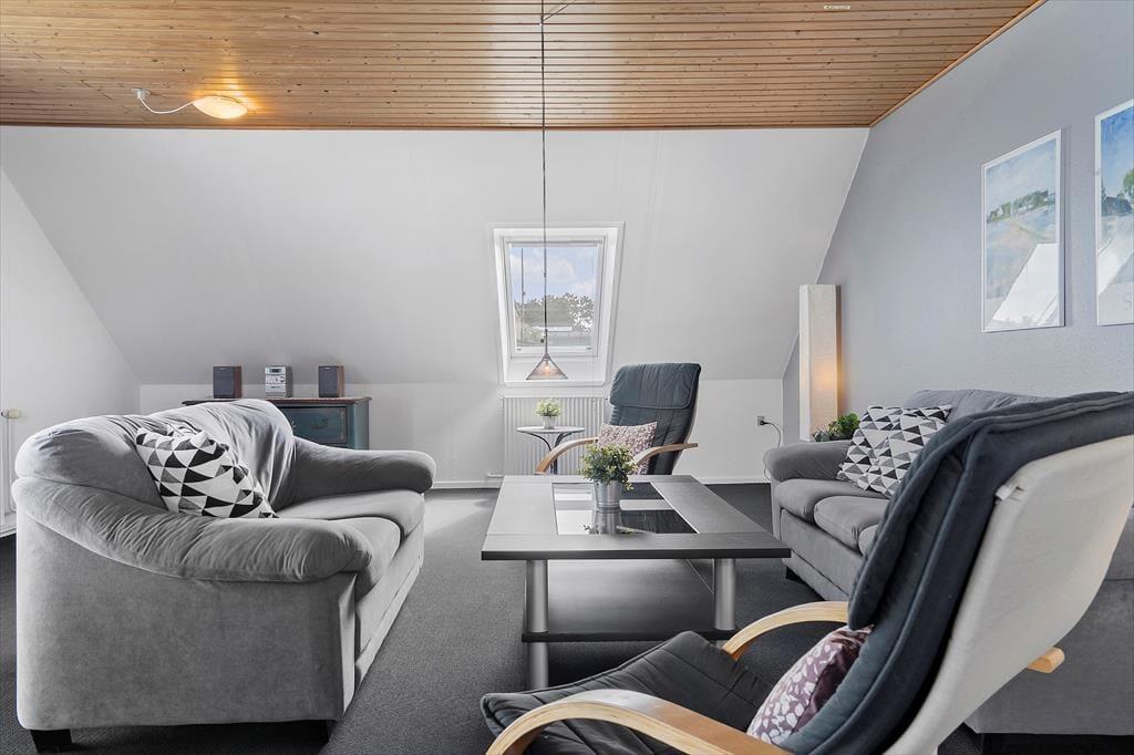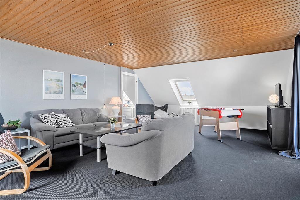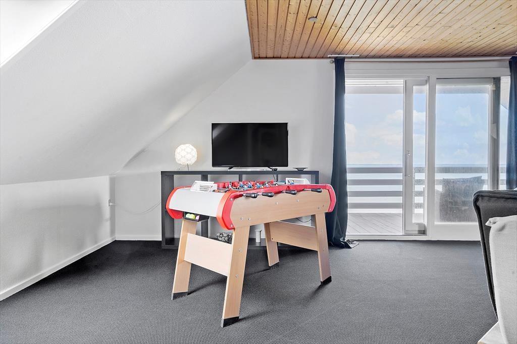 Både i underetagen og på overetagen er der sofahjørne med plads til hygge og afslapning. På overetagen er der også et bordfodboldbord hvor børnene kan bruge mange timer.