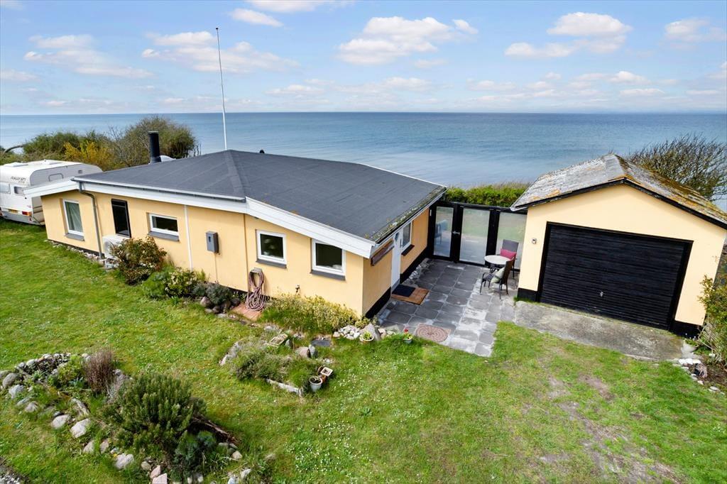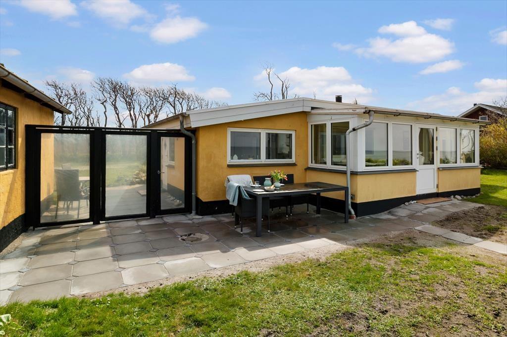 Du kan næsten ikke komme tættere på stranden, end når du skal bo i dette sommerhus.Så snart du træder udenfor døren er havet og stranden helt tæt på. Den sikre vej til stranden er dog 100 meter ad grusvejen, hvor du kan gå direkte ned og tage en dukkert. I kan selvfølgelig også sætte jer foran huset i havemøblerne, og nyde en middag og se solnedgangen fra første parket. Ved husets indgang er der endnu en terrasse, der er syd-øst vendt, så her er der mulighed for at sidde helt i læ og stadig nyde omgivelserne.
