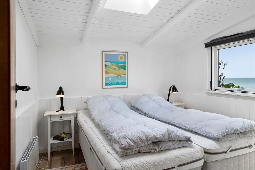 Dette charmerende sommerhus emmer af hygge og dejlige timer sammen for op til fire gæster. Huset har en god indretning og forskudte niveauer, men helt centralt er udsigten over Samsøs kyst og havet, der er lige ude foran vinduerne.