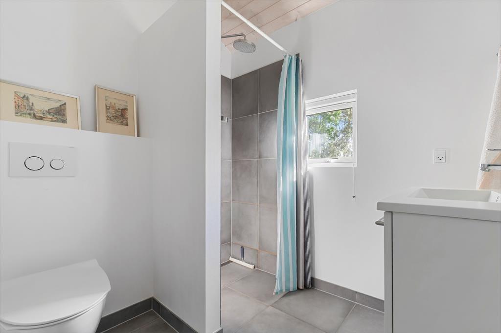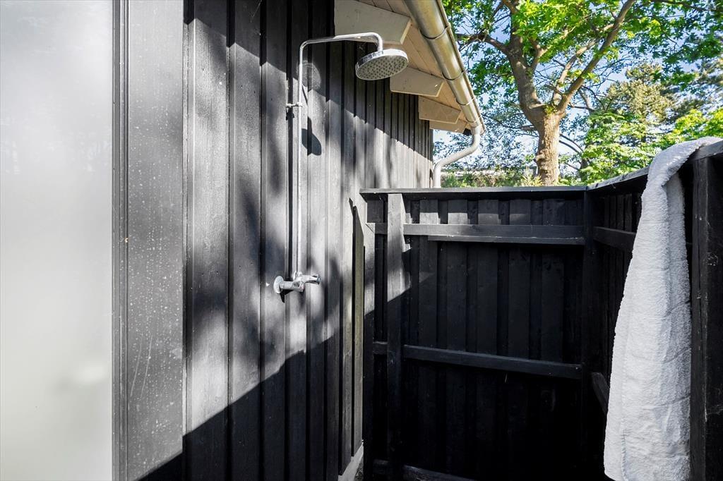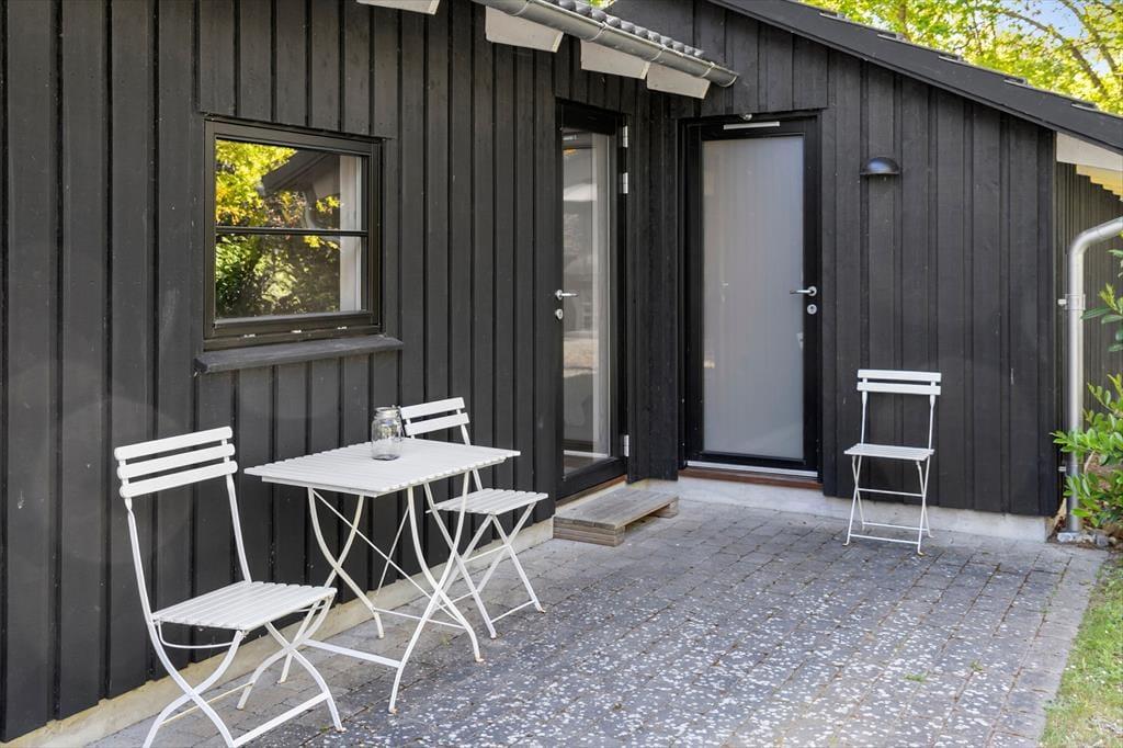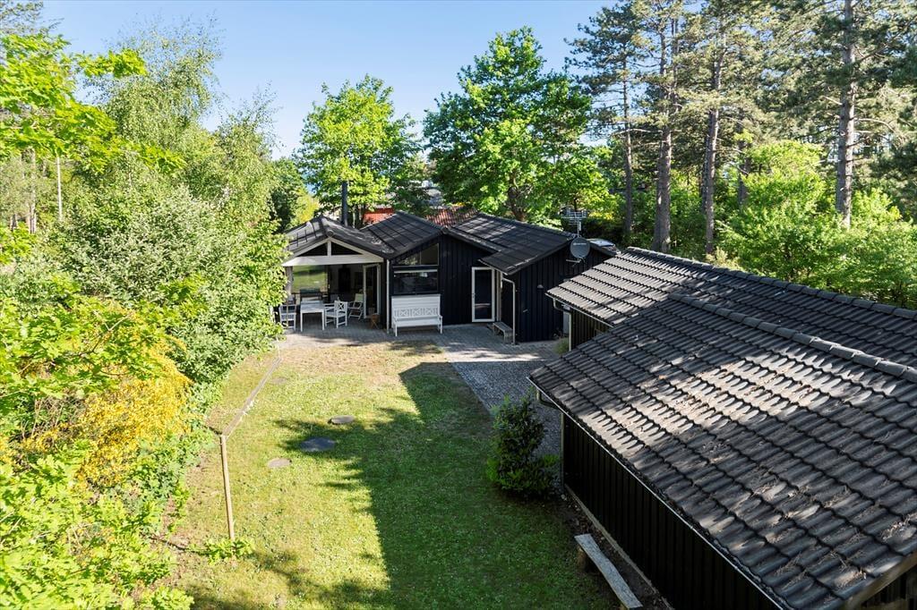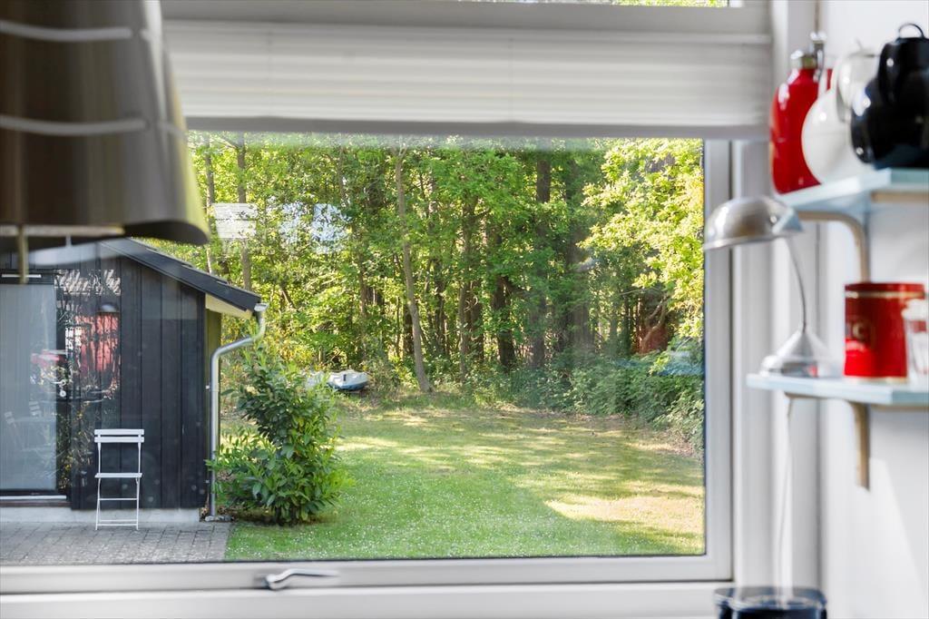 Sommerhuset er omgivet af en skøn have med buske og træer, der skaber både privatliv og en afslappende atmosfære. Der er masser af plads til leg i græsset, og huset ligger blot 150 meter fra stranden. Fra huset fører en lille sti direkte ned til vandet, hvor I hurtigt kan tage en dukkert eller gå en tur langs kysten. Terrassen med udgang fra køkkenet er ideel til at grille og nyde måltider i det fri.