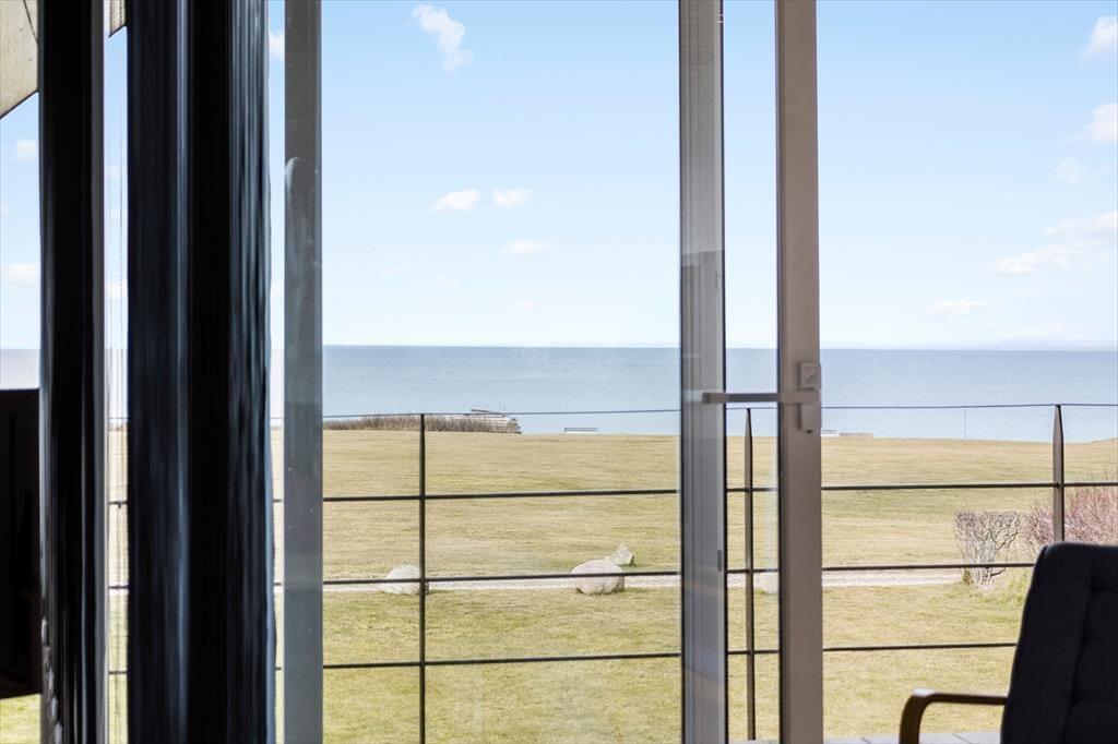 Ved spisebordspladsen er der også store, dejlige vinduer hvorfra der er udsigt til vandet. I denne lyse og indbydende spisestue kan alle samles og nyde dagens måltider. Her er også en 3-personers sofa og lænestol, så alle kan være samlet her, om man spiller et spil ved bordet eller hviler sig i sofaen. Fra en glashavedør er der udgang til en dejlig sydvendt terrasse, der er perfekt til at tage måltiderne eller morgenkaffen med ud på. I forlængelse af denne terrasse er også en overdækket terrasse, der vender mod vest og vandet.