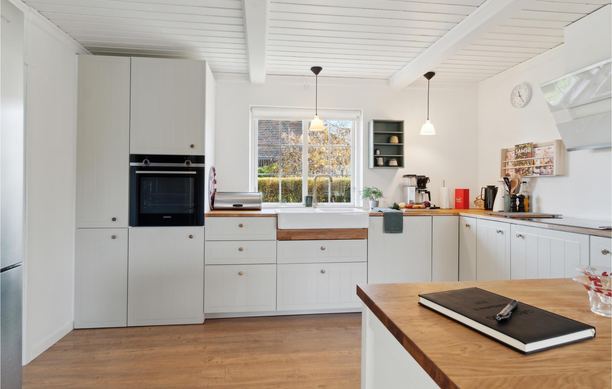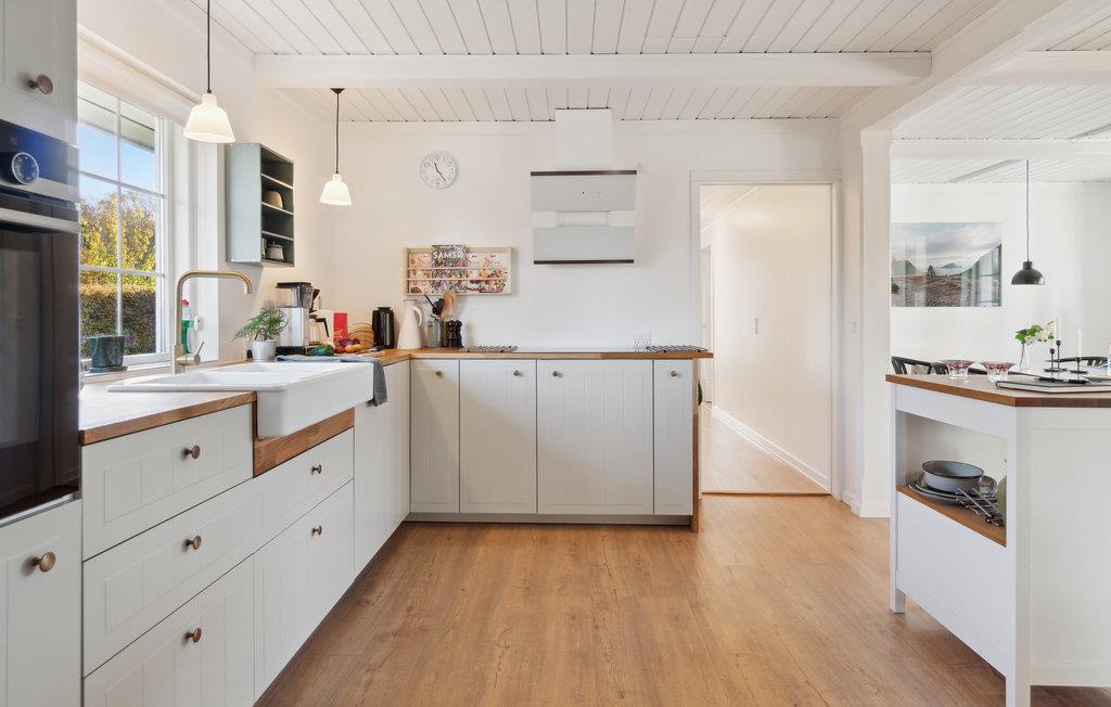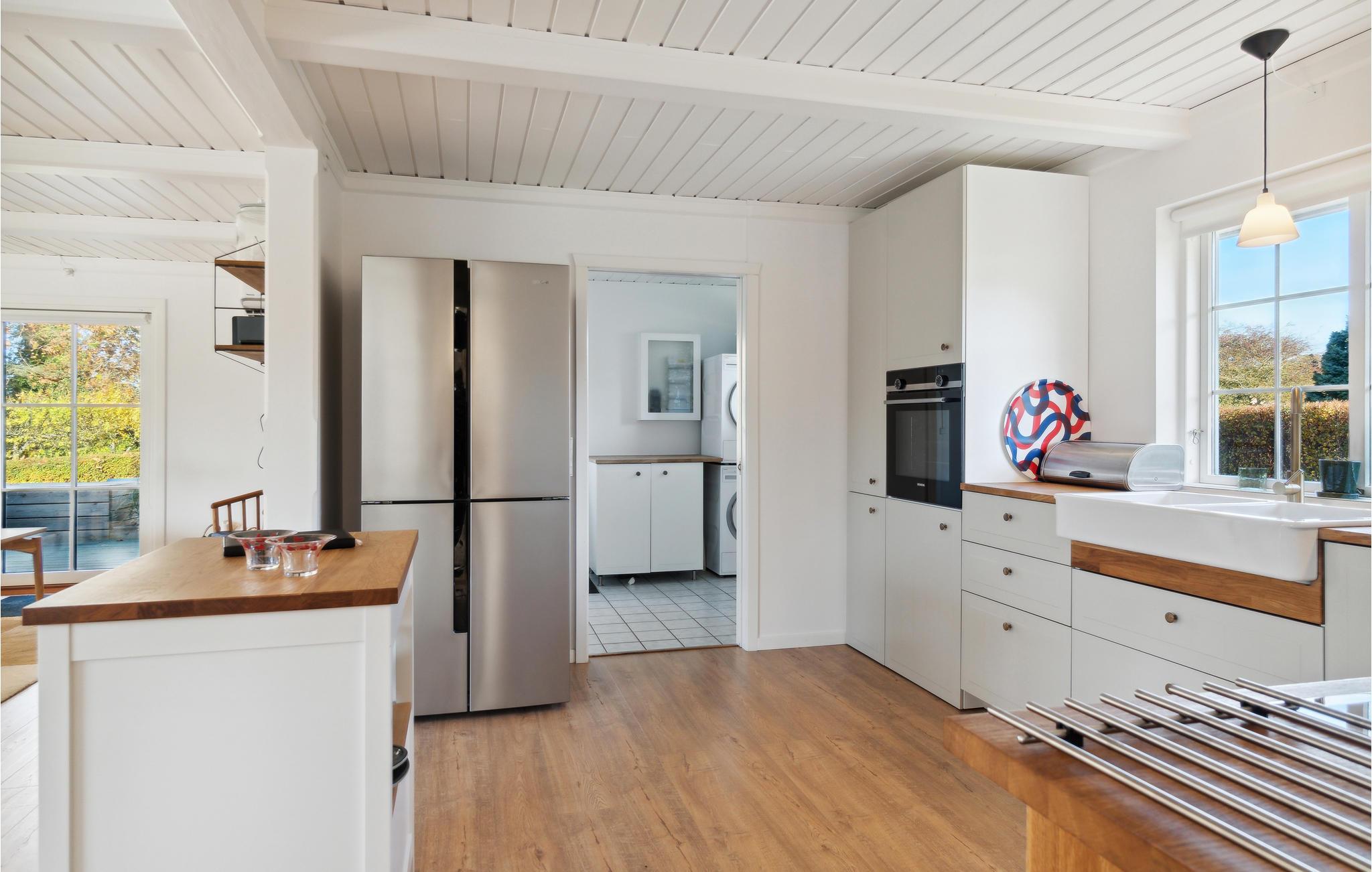 Der er lagt op til nogle herlige dage med god plads til alle i dette skønne hus, som ligger på Samsø smukke vestkyst. Her kan I give jer god tid til at frembringe lækre retter i køkkenet, slappe af med bøger og brætspil og læne jer godt tilbage i sofaen, mens ilden knitrer i brændeovnen. Terrassen ligger i skøn forlængelse af boligen, så her får I et dejligt ekstra rum om sommeren. Nyd solen, mens børnene leger på græsplænen eller skru op for forkælelsen med en rolig stund i vildmarksbadet.