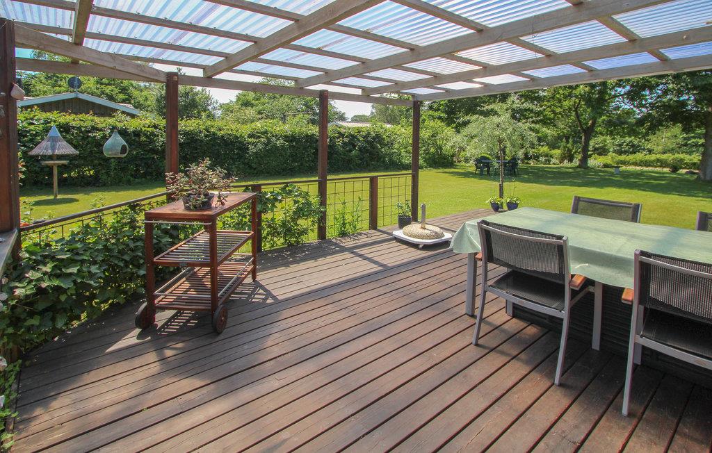 Charmerende feriehus på Samsø med brændeovn og smuk terrasse tæt på stranden.