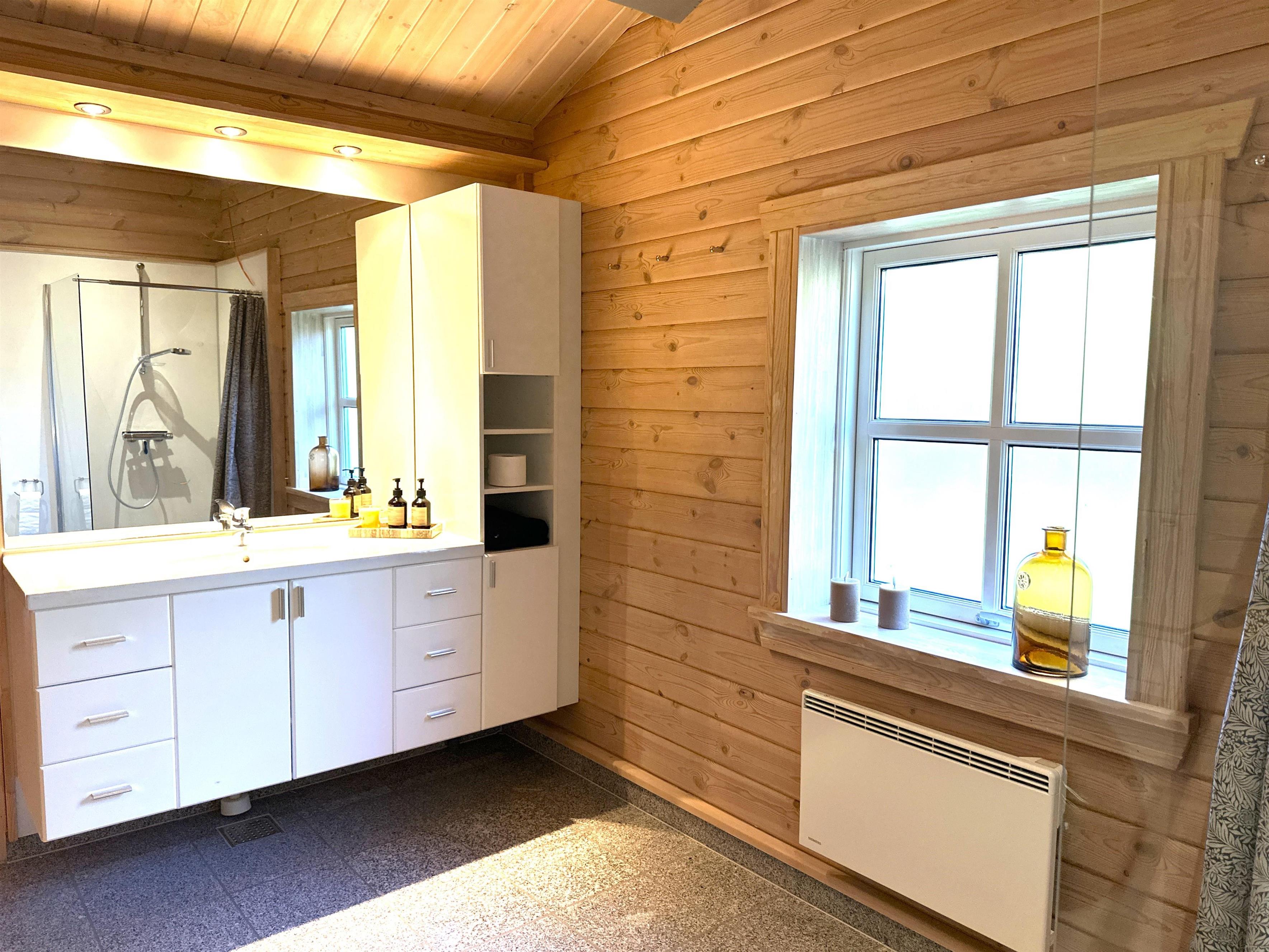 Huset byder på fire soveværelser, så der er god plads til alle. To af værelserne har dobbeltsenge, et værelse har to enkeltsenge, og det fjerde værelse har en enkeltseng. Derudover er der to badeværelser, begge med brusekabine, så morgenerne kan glide let, selv når I er mange.