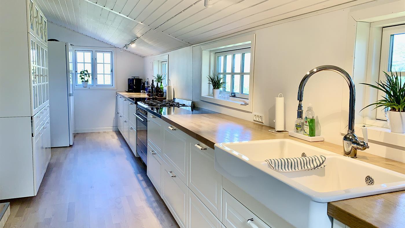 Køkkenet er godt udstyret med alt, hvad du behøver for at lave lækre måltider – inklusive et praktisk gaskomfur, så du kan tilberede alt fra simple retter til gourmetoplevelser.