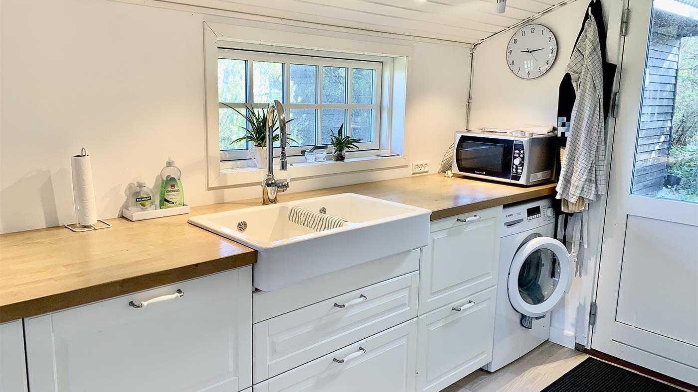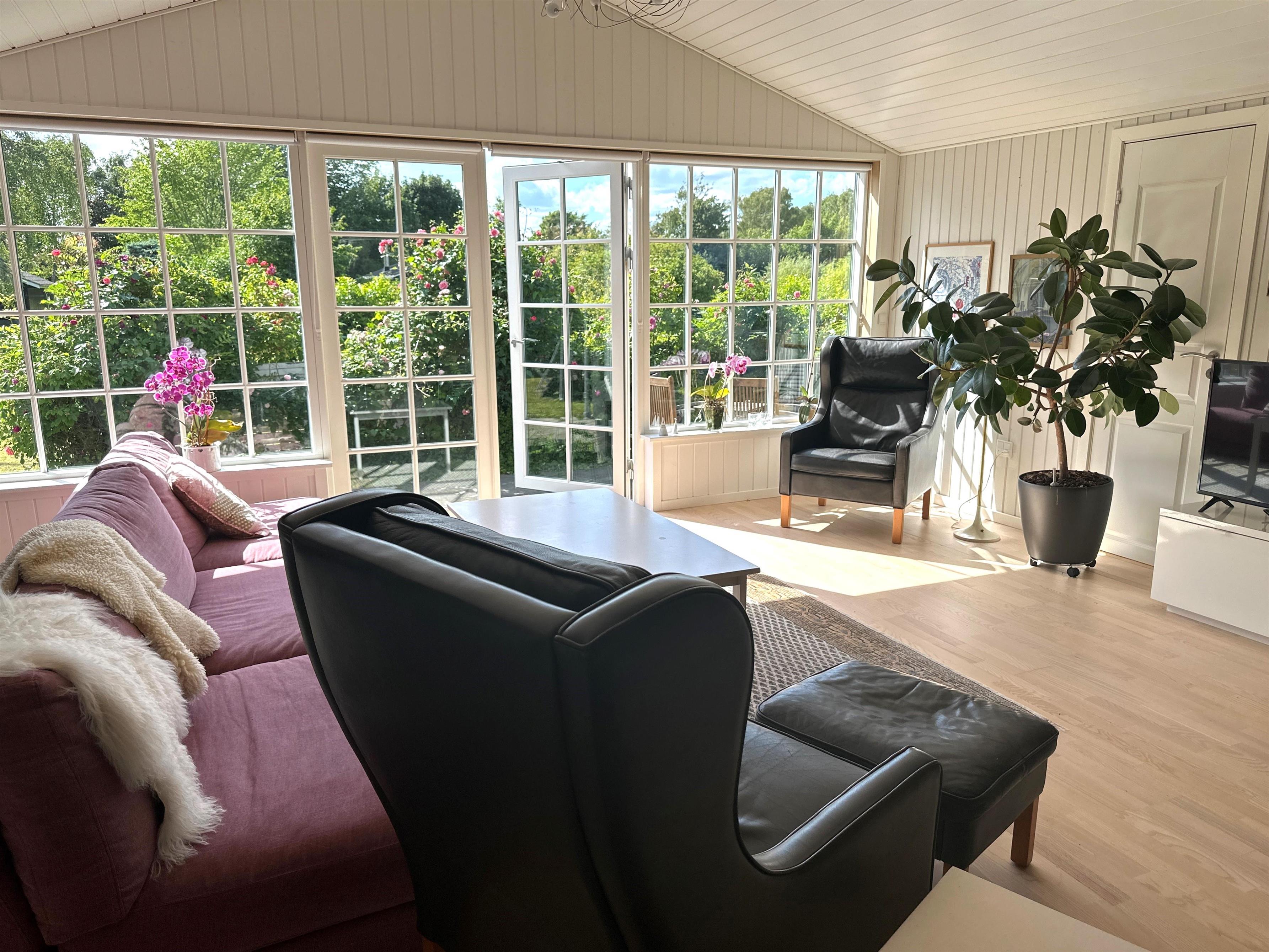 Udenfor venter en stor, privat grund med en dejlig terrasse, hvor du kan grille og nyde måltider under åben himmel. Slap af i de komfortable havemøbler, og lad dig omfavne af roen i omgivelserne. Terrassen er også perfekt til lange, lyse sommeraftener, hvor du kan nyde livet og skabe uforglemmelige øjeblikke.