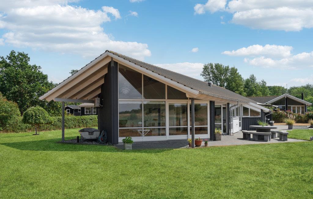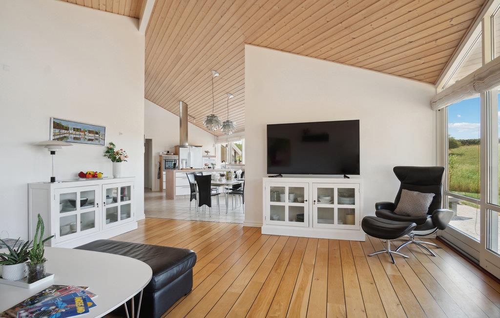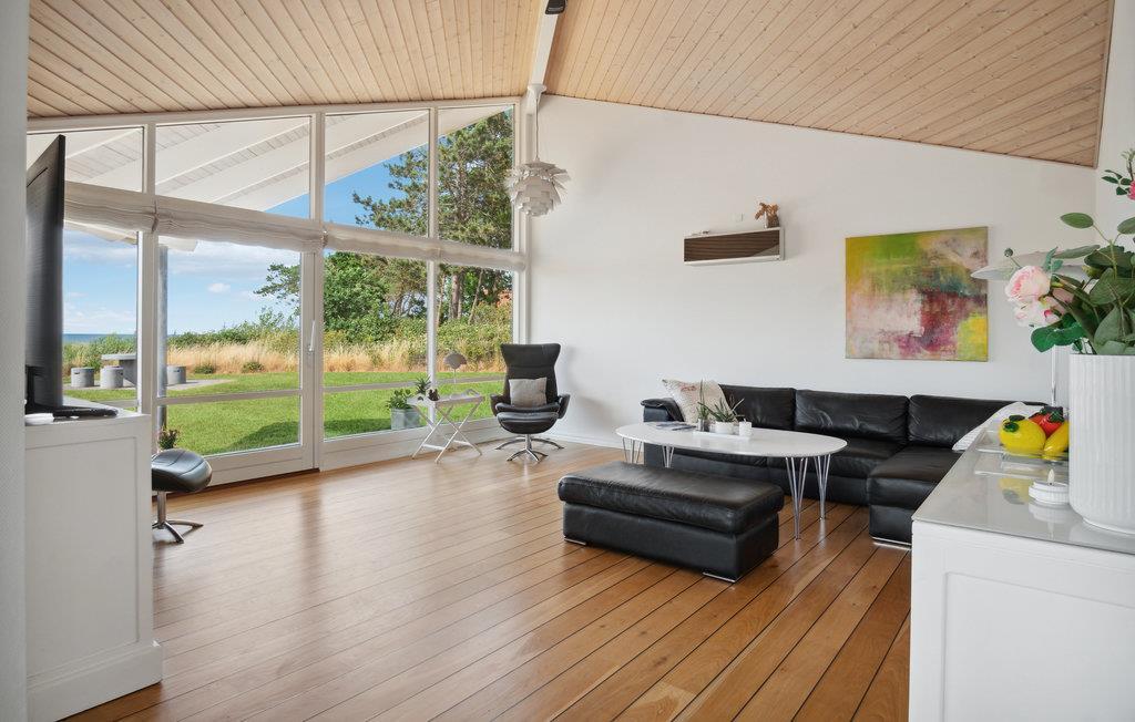Her får du 120 m² fordelt på 3 værelser, 2 moderne badeværelser samt en stor, åben stue med køkken og spiseområde. De store panoramavinduer skaber en unik forbindelse mellem inde og ude, så du altid har naturen tæt på. Stuen er indrettet med komfortable møbler og et stort TV, så der er rig mulighed for afslapning efter en dag fyldt med oplevelser.