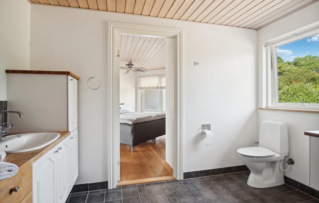 Køkkenet er fuldt udstyret med moderne faciliteter, så I kan nyde hyggelige måltider sammen – enten ved spisepladsen med udsigt til haven eller ude på terrassen i den friske luft. Badeværelserne er lyse, rummelige og indrettet med fokus på komfort.