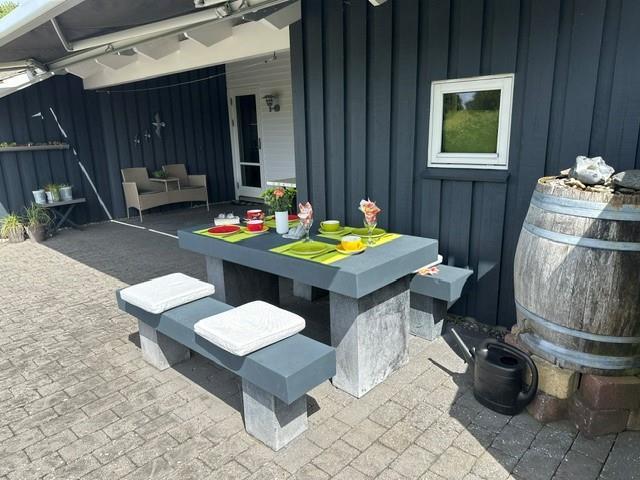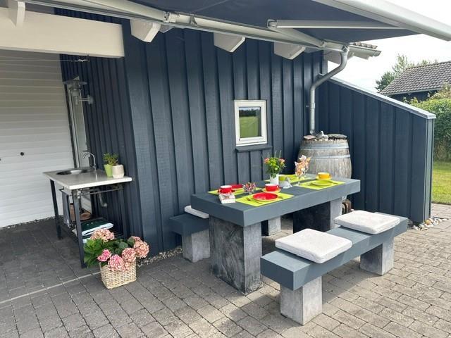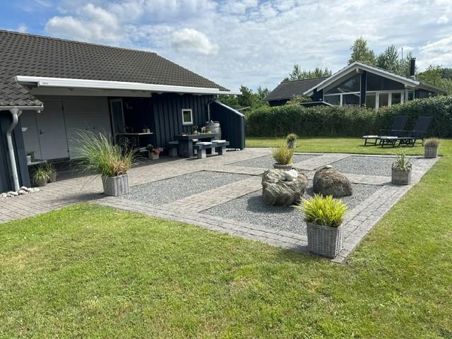finder du en skøn terrasse og et dejligt haveområde, hvor I kan grille, solbade eller blot læne jer tilbage og nyde roen. Med kun 200 meter til stranden er det nemt at tage en frisk morgendukkert eller en aftentur langs vandet.