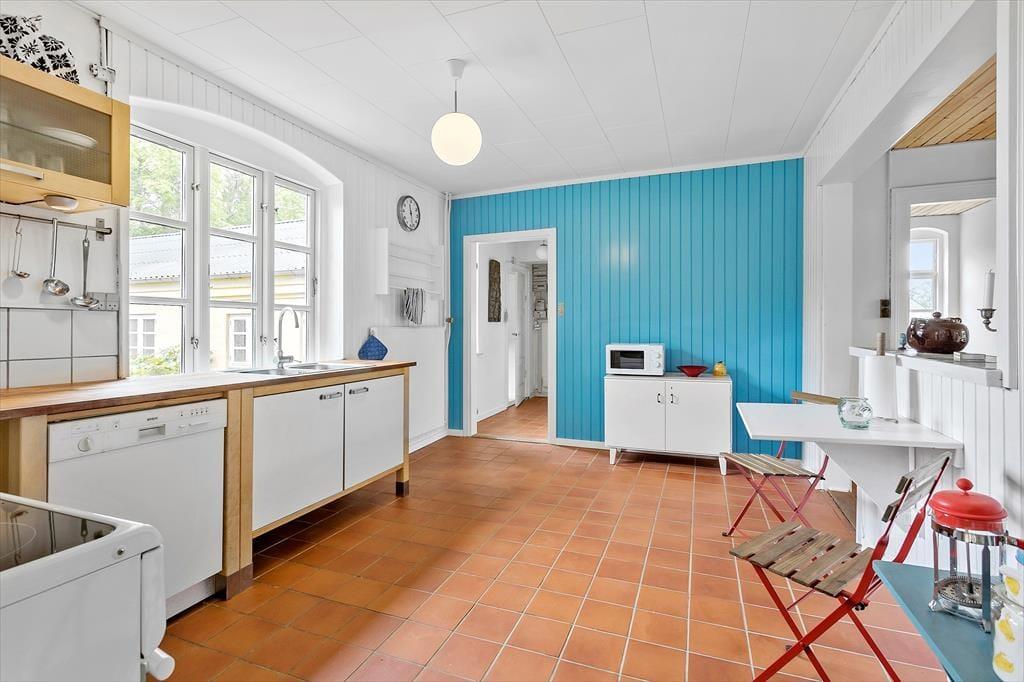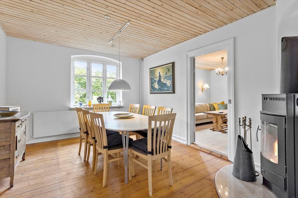 Når du træder ind i denne charmerende villa, mødes du af en lys og rummelig atmosfære. Den lille entre fører direkte til køkken-alrummet, hvor moderne bekvemmeligheder kombineres med hyggelige detaljer som brændeovnen, der spreder varme og hygge. Køkkenet er fuldt udstyret og indbyder til fælles madlavning og hyggelige måltider ved spisepladsen. Fra køkkenet er der adgang til stuen, hvor du kan slappe af med en god bog eller en film på sofaen. Husets indretning er lys og indbydende, perfekt til at skabe de bedste ferieminder.